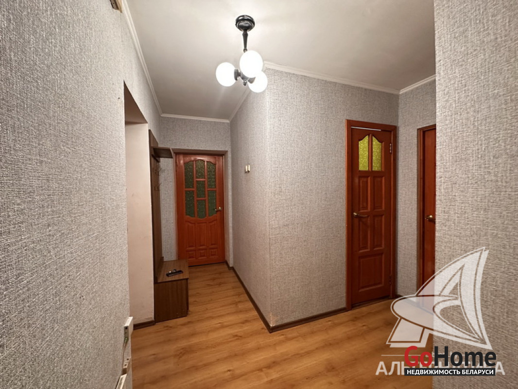 2-комнатная квартира, г. Брест, ул. Брестских дивизий, 1970 г.п., 46,3 / 45,5 / 26,8 / 6,5, санузел совмещенный, подвал, балкон застеклен, стеклопакеты, межкомнатные двери - массив, входная дверь металлическая, потолки - снежка и оклеены касетонами (2,5 м), полы - ламинат, линолеум и плитка (в кухне), стены оклеены обоями, в санузле современная плитка, заменен полотенцесушитель, домофон. Кухонный гарнитур, газовая плита, встроенная гардеробная. Квартира в жилом состоянии. Чистый подъезд. Лот - 252048