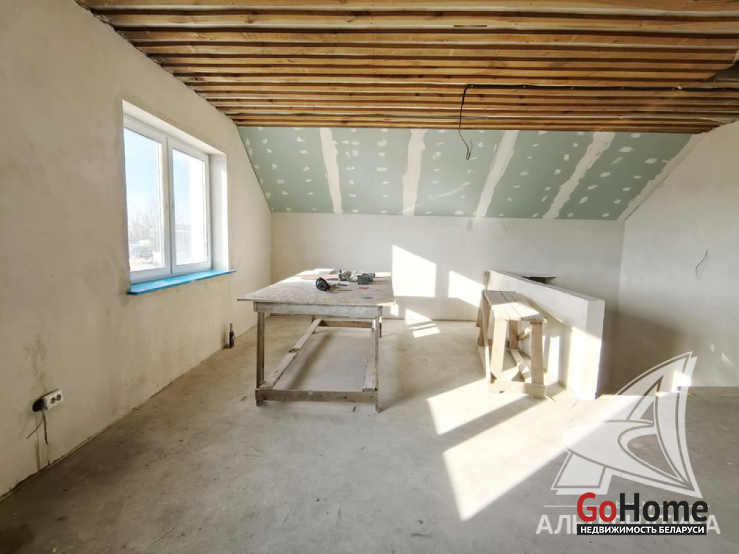 Жилой дом под чистовую отделку в г.Бресте. 2017 г.п. 1 этаж, мансарда. Общ.СНБ - 233,5 кв.м, общ.- 233,5 кв.м, жил.- 161,5 кв.м, кух.- 28,0 кв.м. 5 комнат, высота потолка - 3,0 м.