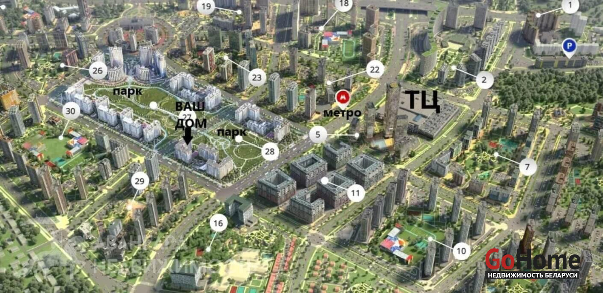 Инфраструктура. Экономьте время каждый день! Центр города с развитой логистикой. В шаговой доступности есть все необходимое для жизни: остановки общественного транспорта, станция метро Аэродромная (5 - 7 минут), рядом школа, детский сад магазины, аптеки, в 7 минутах ходьбы самый большой в Беларуси торгово – развлекательный центр «Авиа – молл».