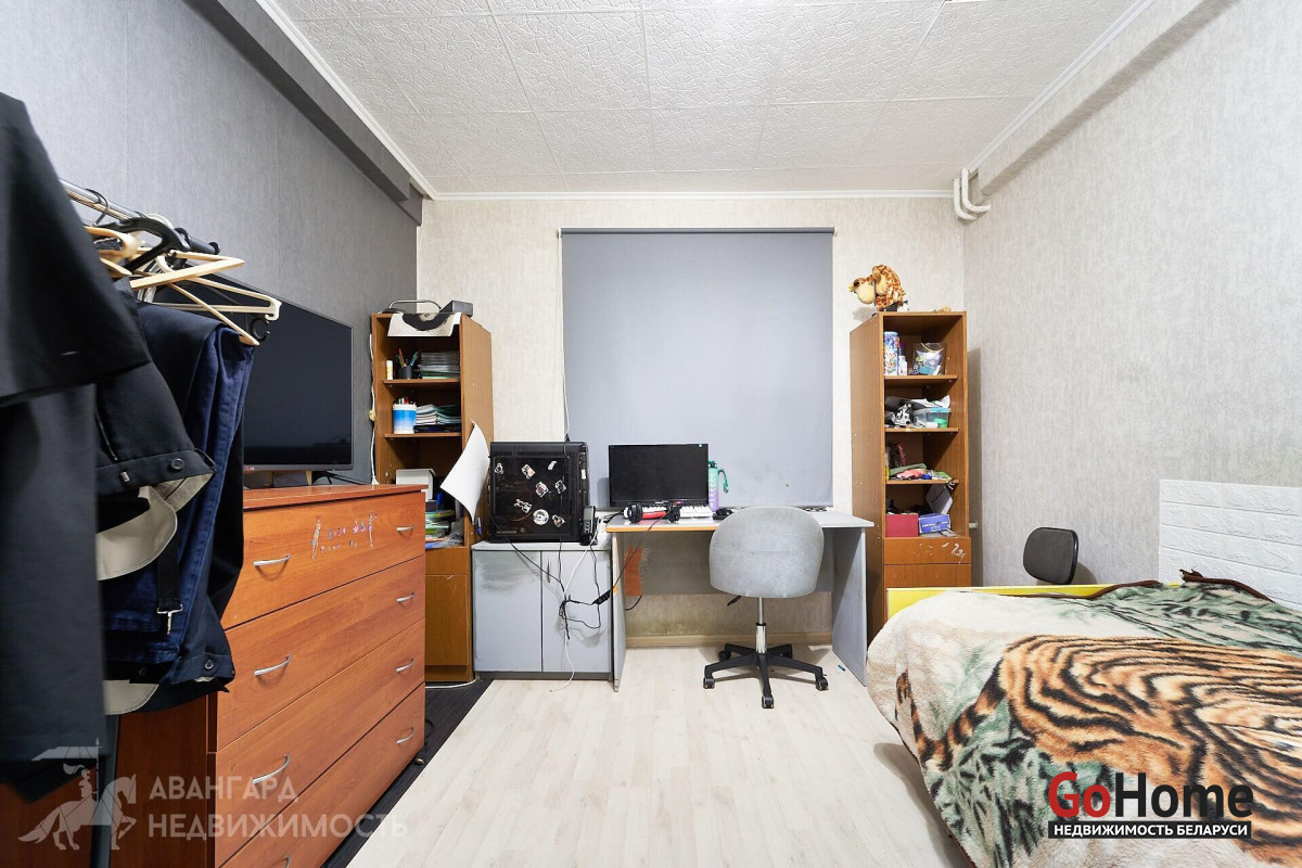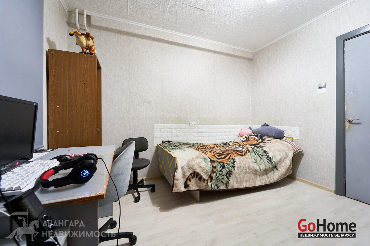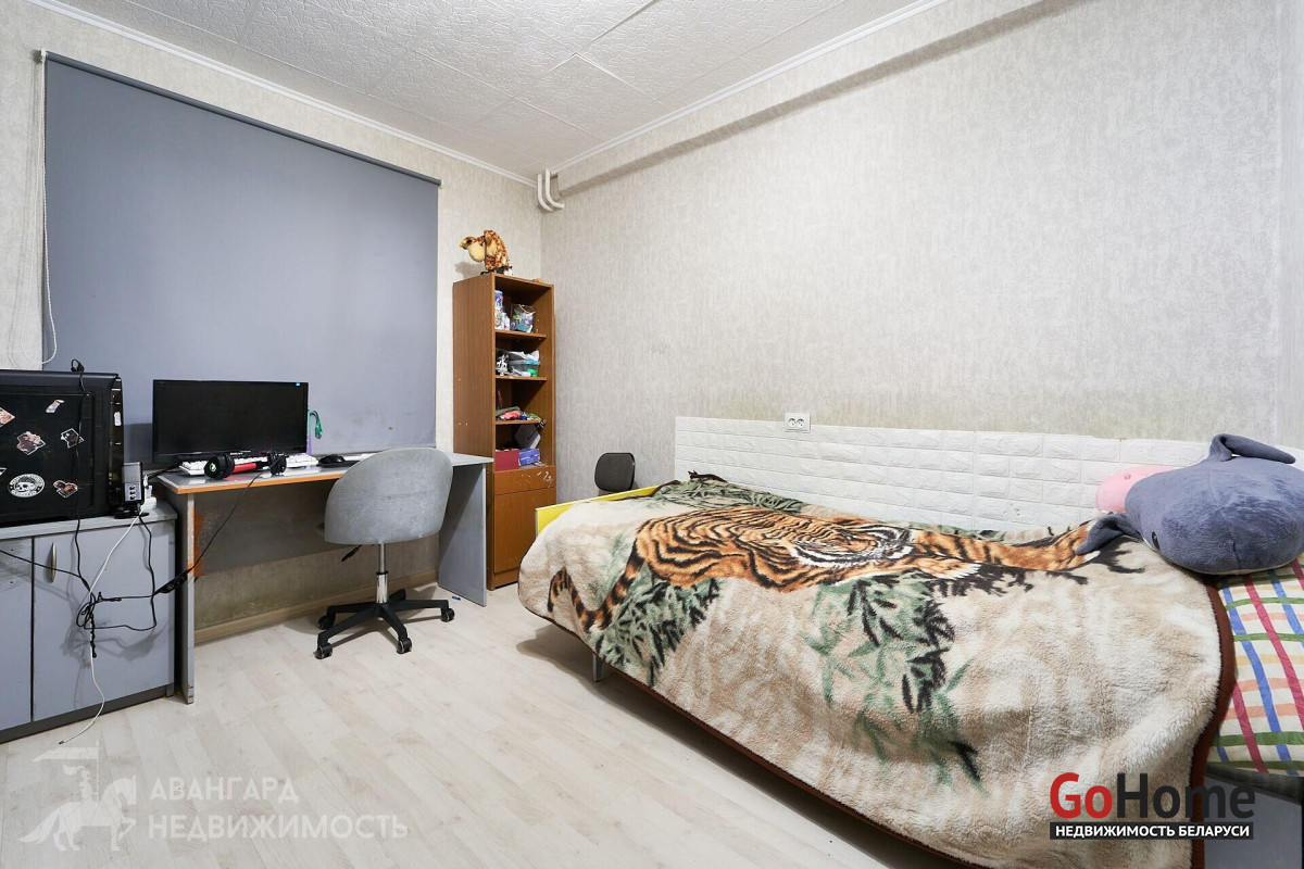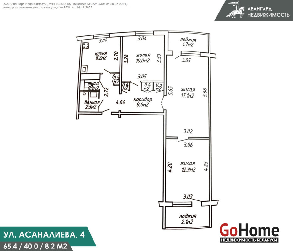 Жилая площадь квартиры составляет по СНБ 65.5м2. Комната с выходом на застекленную лоджию 17,1м2 и вторая изолированная комната также с выходом на застеклённую лоджию площадью 12.9м2. Ещё одна изолированная комната 10.0м2. Просторная кухня площадью 8.2м2, укомплектована газовой плитой и обеденной зоной. Раздельный санузел, подключена стиральная машина.