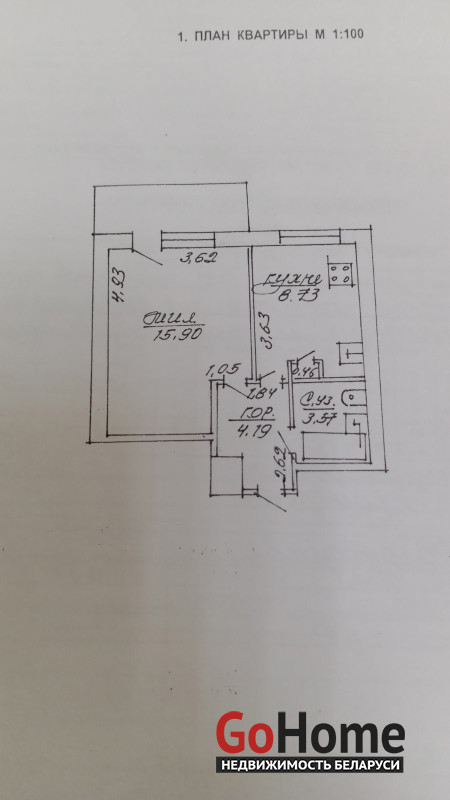 Панель дом 1979 года постройки. Представленная квартира расположена на 3 этаже. Общая площадь квартиры 32,9 М2, жилая комната с нишей 15,9 М2, кухня 8,73 М2. Совмещённый санузел, балкон застеклен деревянным остеклением. В квартире установлены окна ПВХ, в остальном квартира нуждается в ремонте