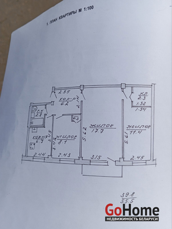 Состояние квартиры косметическое, нуждается в ремонте. Окна деревянные стеклопакеты, пол ДСП, совмещённый санузел, подсобная комната.