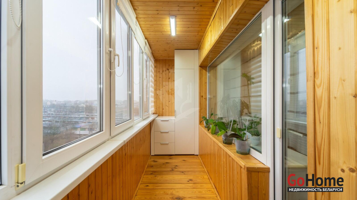 Лоджия: просторная, с отличным потенциалом под зону отдыха, выделенно место под хранение.