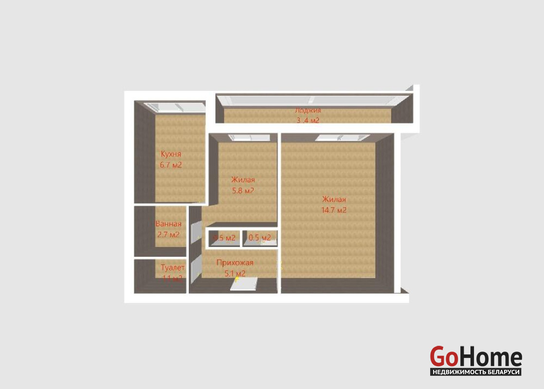 Грамотная перепланировка: вместо стандартной «однушки» — две изолированные комнаты, каждая с естественным освещением (вторая комната — с окном на лоджию).