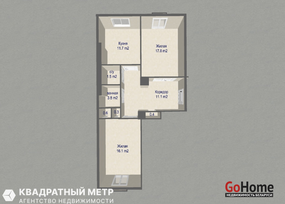 Общая площадь квартиры составляет 63.3м.кв. Две просторные комнаты 17,8 и 16.1 м.кв. выходят на разные стороны дома и каждая имеет выход на балкон. Т.е в квартире два балкона. Большая кухня 11,7 м.кв. Высокие потолки 2,9 м.кв. Мебель и бытовая техника по договоренности. Стеклопакеты, металлическая дверь. Большой коридор с кладовой комнатой. В одной из комнат большой встроенный шкаф. Квартира очень светлая и теплая. Зимой комфортно и тепло, летом не жарко.