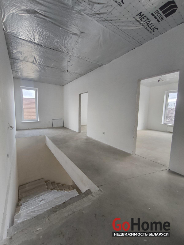 Квартира состоит из кухни-столовой (36,5 кв.м), комнаты и санузла на первом этаже, а на втором этаже расположены три спальни, второй санузел и еще одна комната. В каждой комнате предусмотрен подогрев пола, а отопление осуществляется с помощью газового котла FEROLLI. Объект продается без внутренней отделки, что позволяет новым владельцам реализовать свои идеи по дизайну.