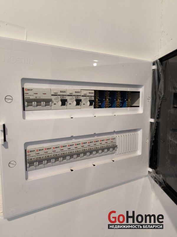 Стены выполнены из газосиликатного блока и гиперпрессованного кирпича с утеплением пенополистиролом. Фасад отделан штукатуркой "американка", а кровля имеет гидроизоляцию. Фундамент - ленточный монолитный из бетона. Коммуникации включают газовое отопление с централизованным газоснабжением, водоснабжение и канализацию. В квартире установлены радиаторы с системой регулировки температуры, полная электрика, розетки и выключатели.