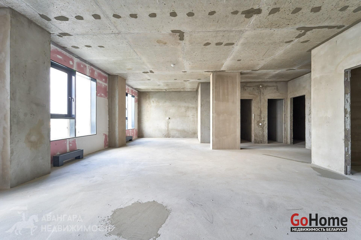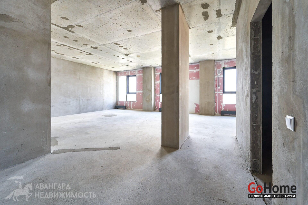 Квартира общей площадью 98.1 м2 по СНБ со свободной планировкой, благодаря чему вы можете спланировать самый смелый дизайн на свой вкус! Высота потолков – 2.88 м. Благодаря высокому этажу, а также такому удачному расположению квартиры именно в этой части дома, перед Вами открывается шикарный вид на дневной и вечерний Минск с его огнями и красками!