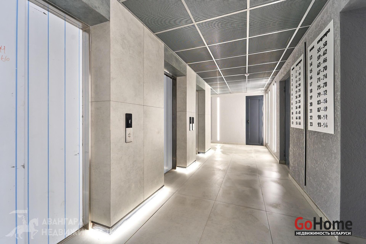Достойная отделка лифтовых холлов и этажных коридоров. При отделке использованы современная плитка, декоративная штукатурка, подвесные потолки с ярким освещением.