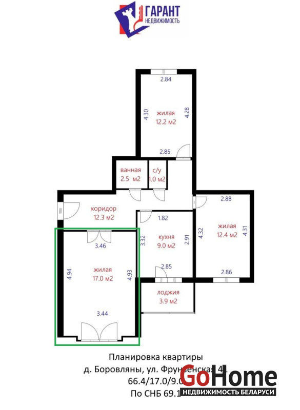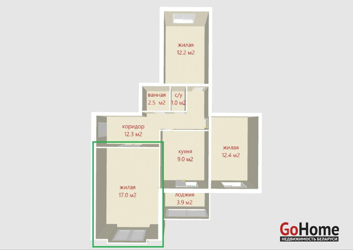 Продается выделенная комната в 3-комнатной квартире в новом районе в Боровлянах.