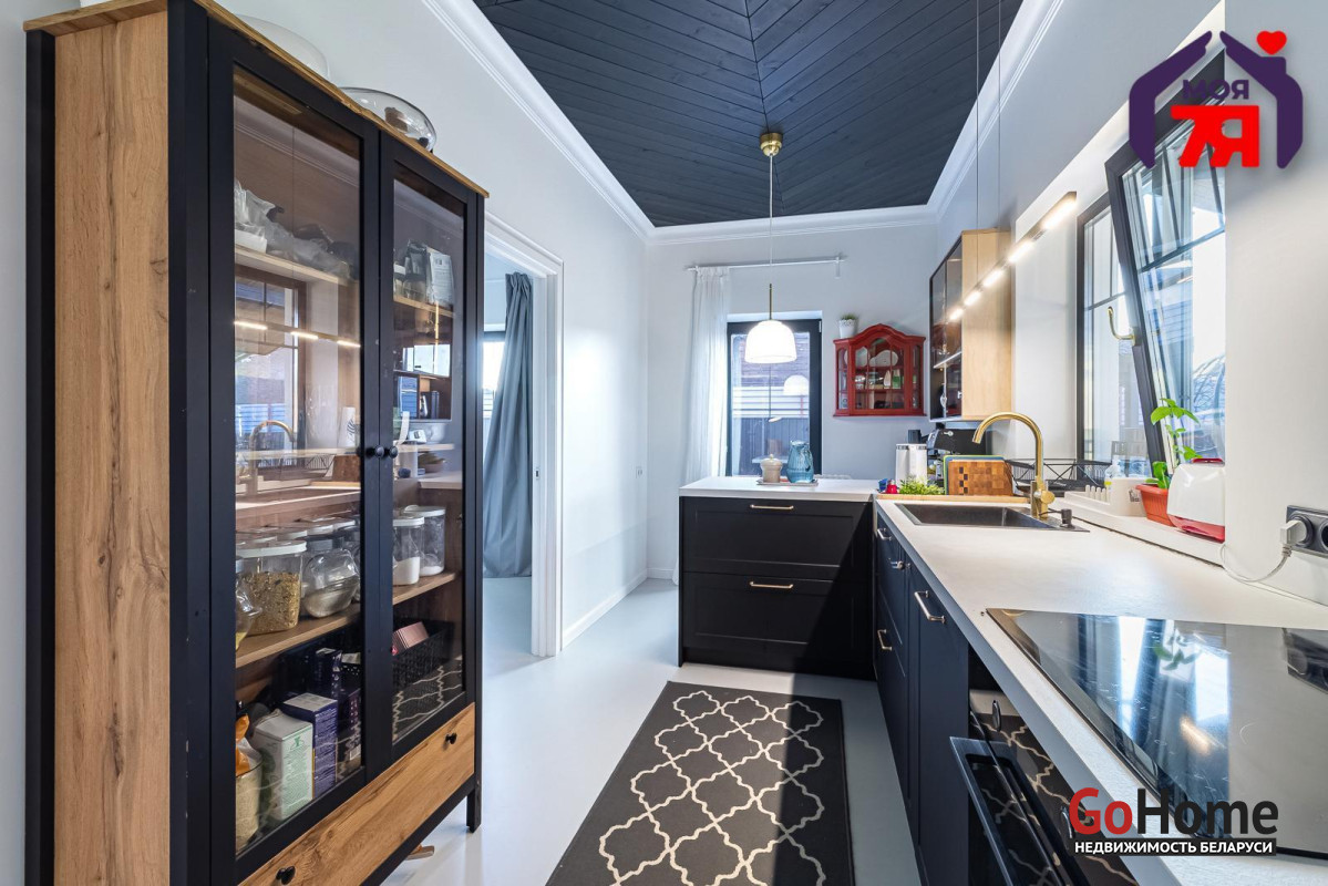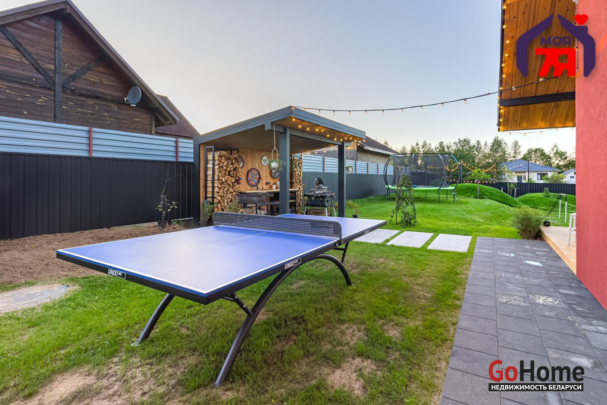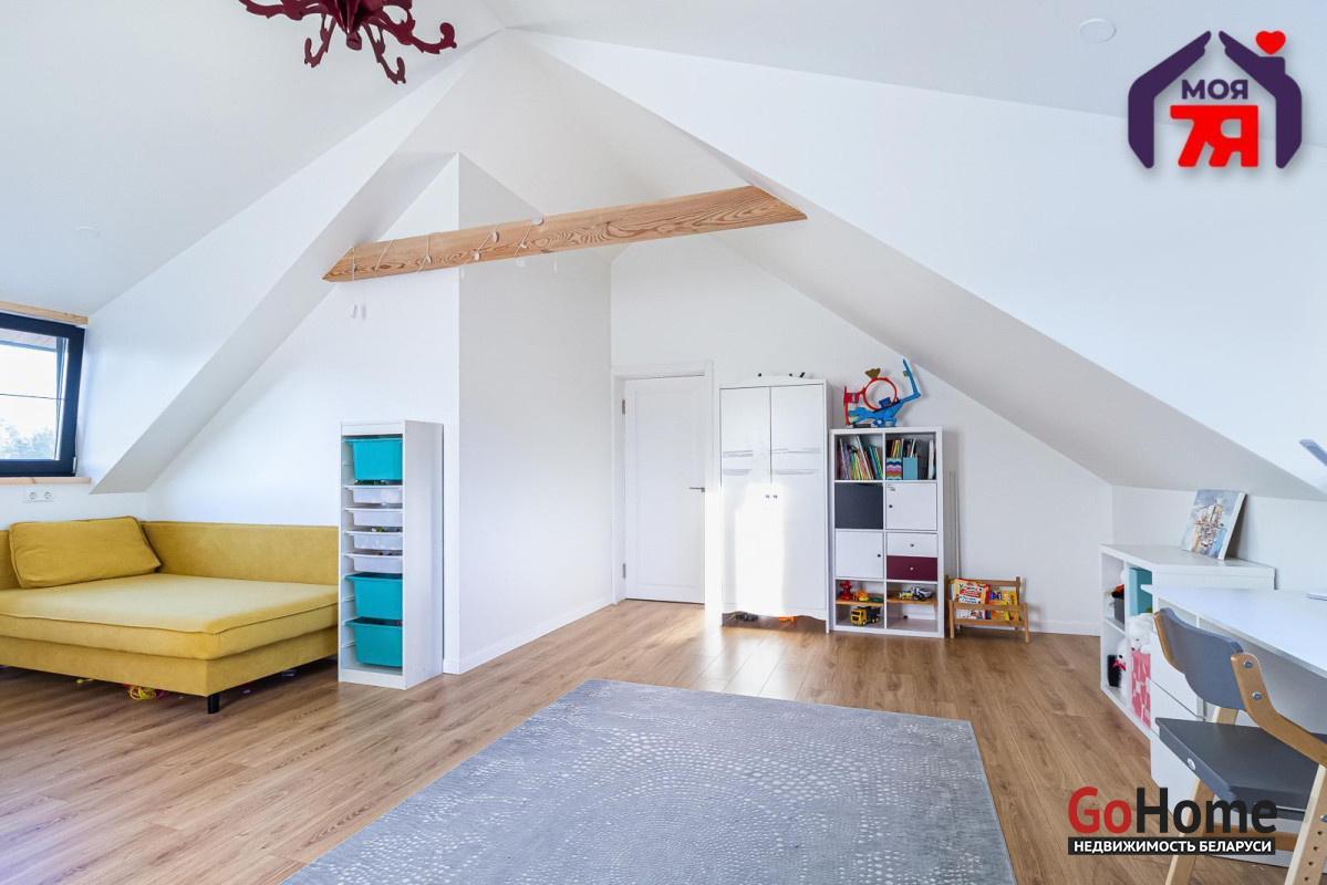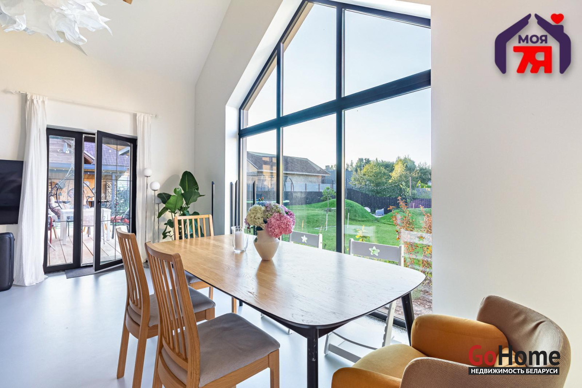 - Интерьер выполнен в стильном дизайнерском решении, которое оценят люди с тонким чувством эстетики. В доме расположены просторная гостинная-столовая, три спальни (в т.ч. Мастер-спальня), два санузла, два гардероба, игровая комната, терраса и котельная. Места точно хватит всем!