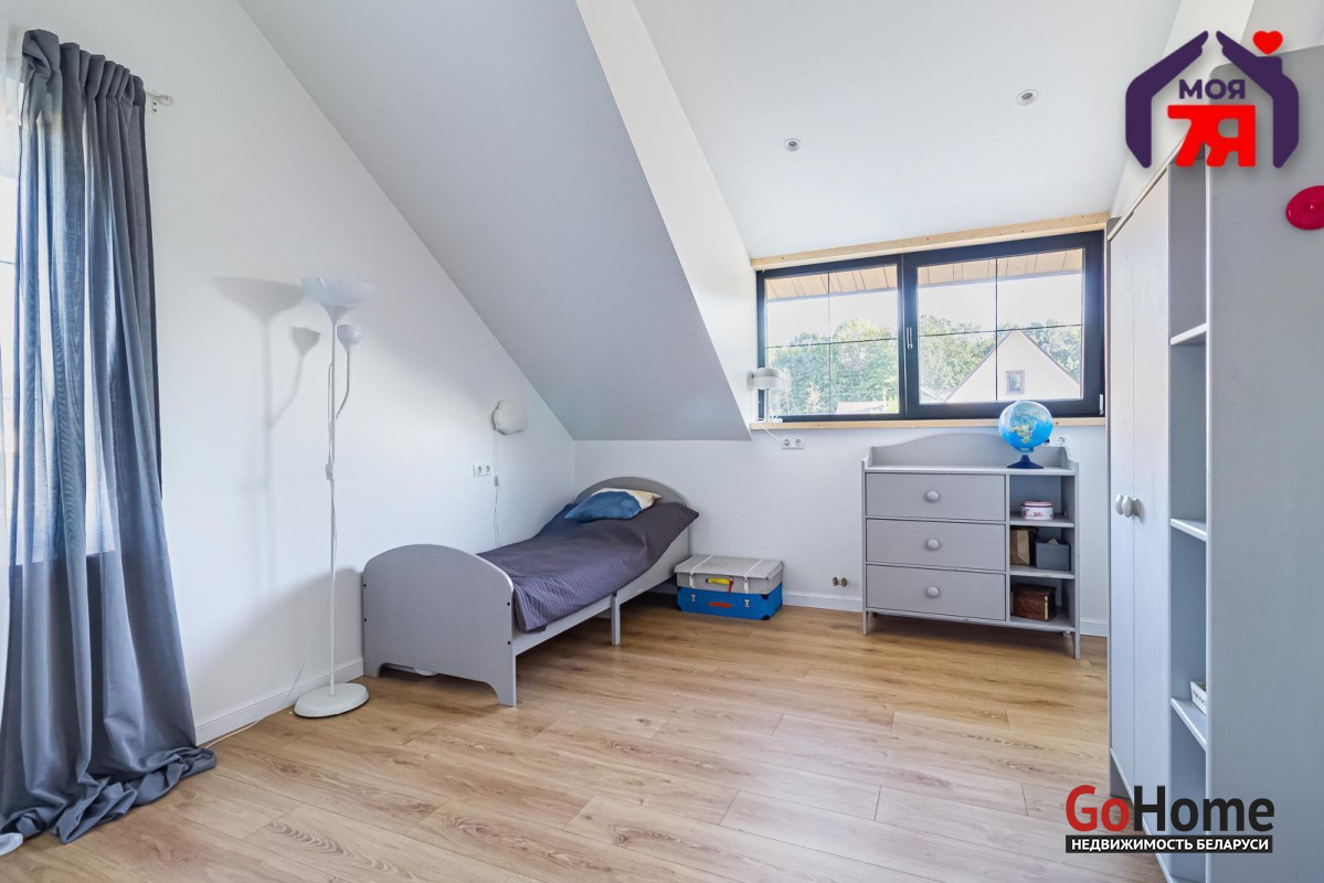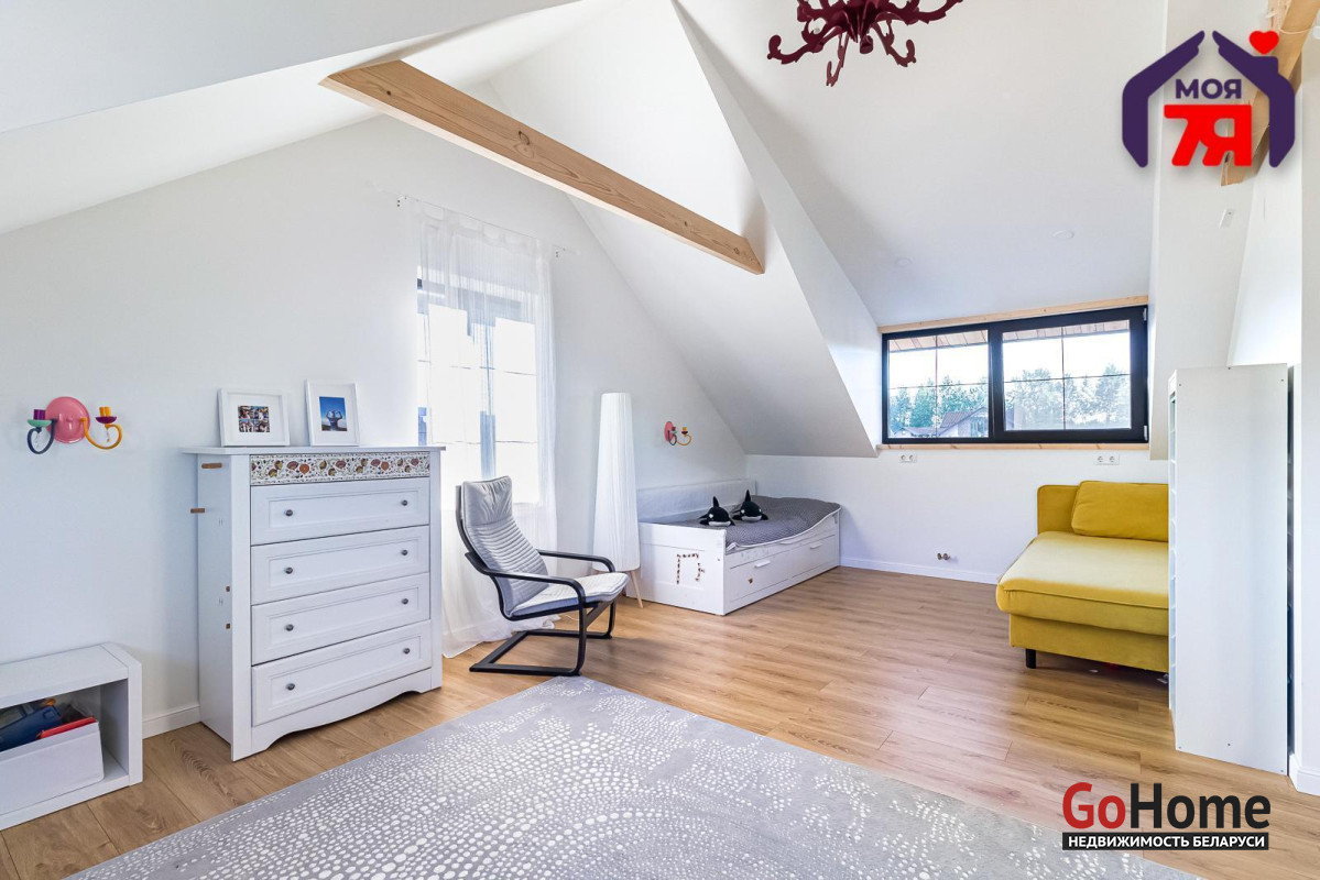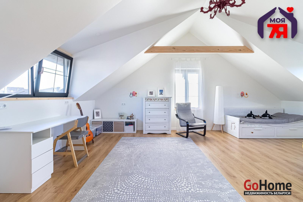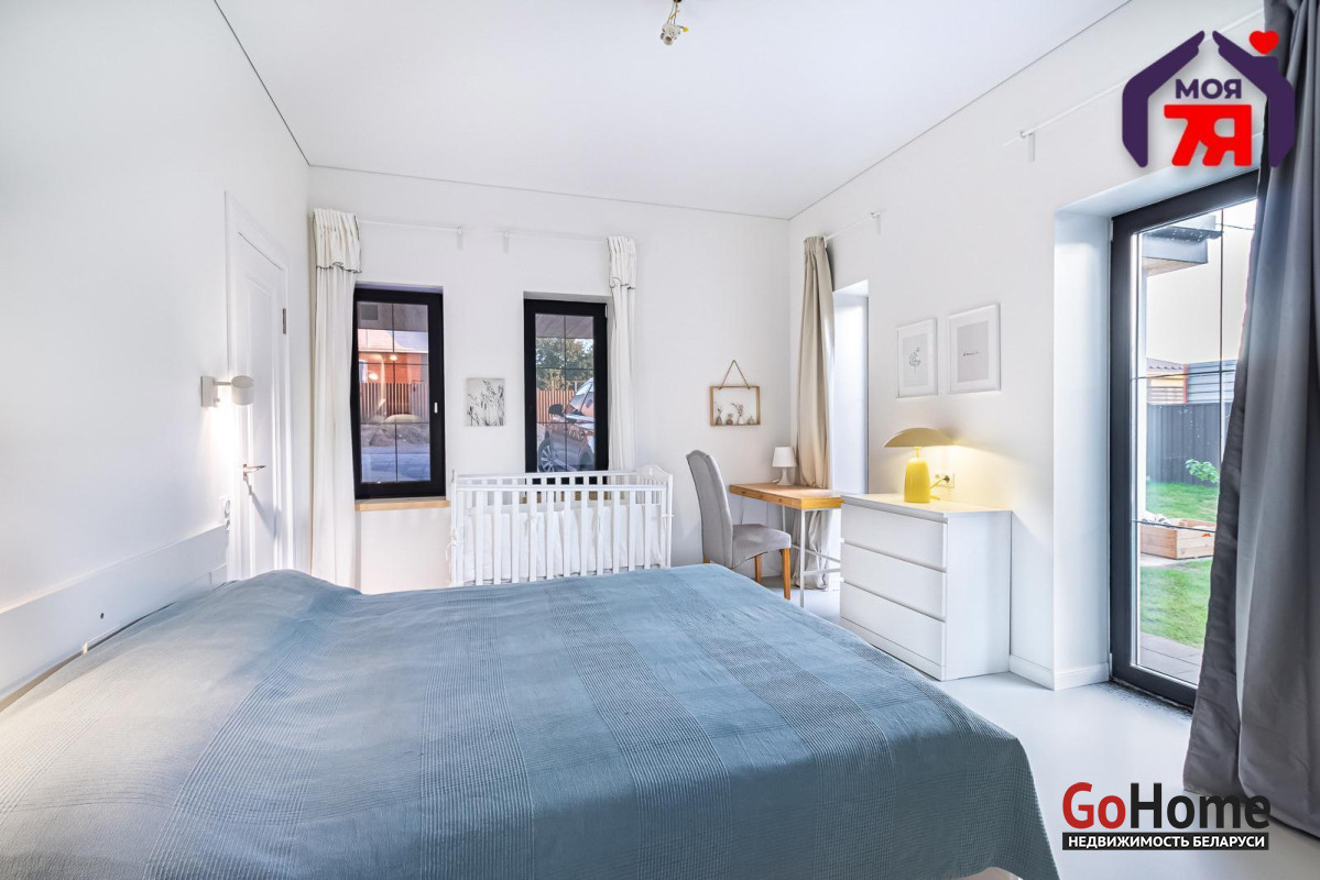 - Интерьер выполнен в стильном дизайнерском решении, которое оценят люди с тонким чувством эстетики. В доме расположены просторная гостинная-столовая, три спальни (в т.ч. Мастер-спальня), два санузла, два гардероба, игровая комната, терраса и котельная. Места точно хватит всем!