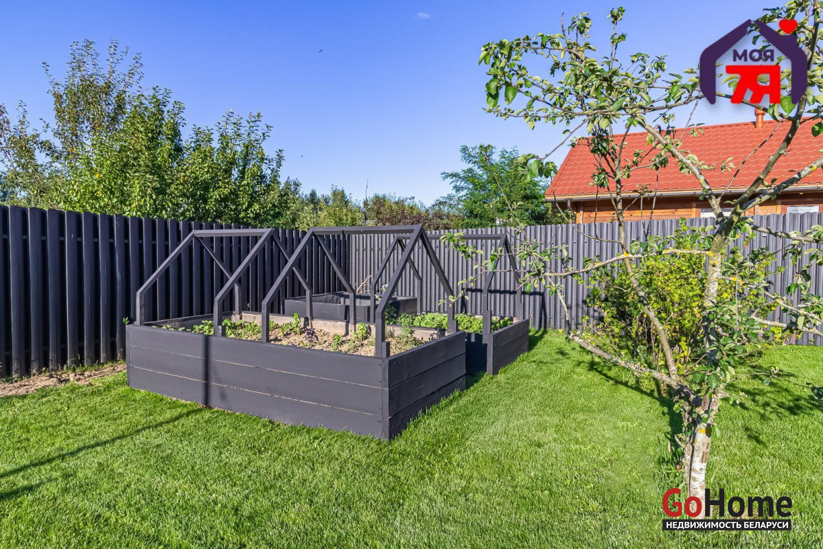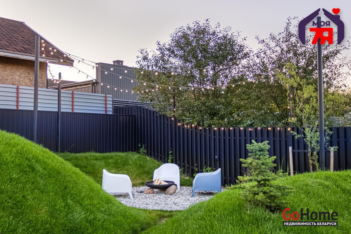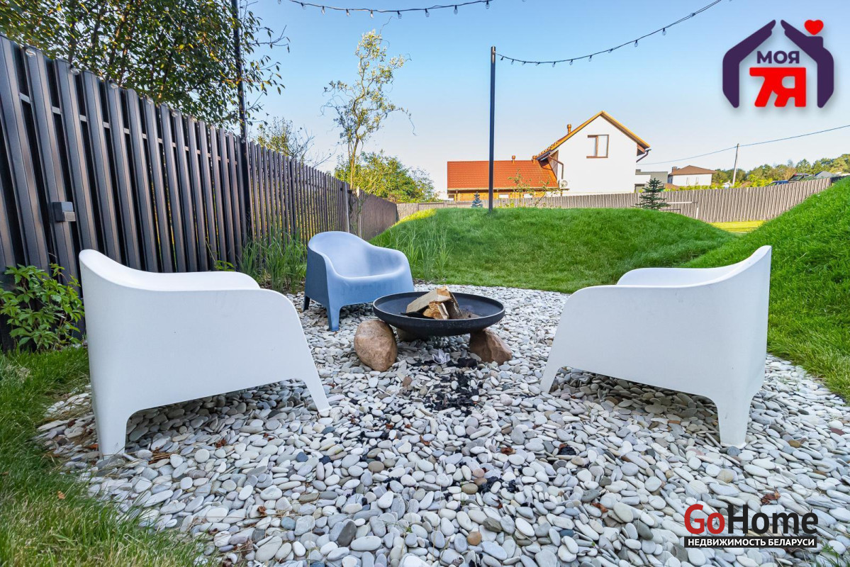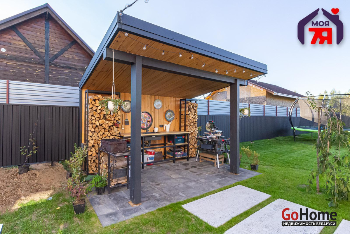 -Участок с ландшафтным дизайном: высокие грядки для садоводства, уютная зона барбекю, лаунж-зона с костровой чашей и просторная терраса, где приятно отдыхать в любое время года. Для удобства предусмотрен хозблок с навесом на два автомобиля и велопарковка.