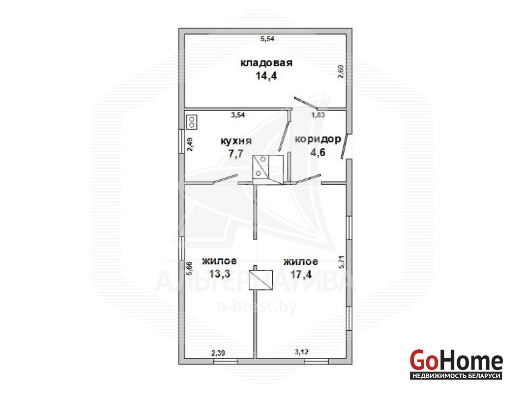 Дом под снос в Брестском р-не. 1930 г.п. 1 этаж. Общ.СНБ - 57,4 кв.м, общ.- 57,4 кв.м, жил.- 30,7 кв.м, кух.- 7,7 кв.м. 2 комнаты, высота потолка - 2,28 м.