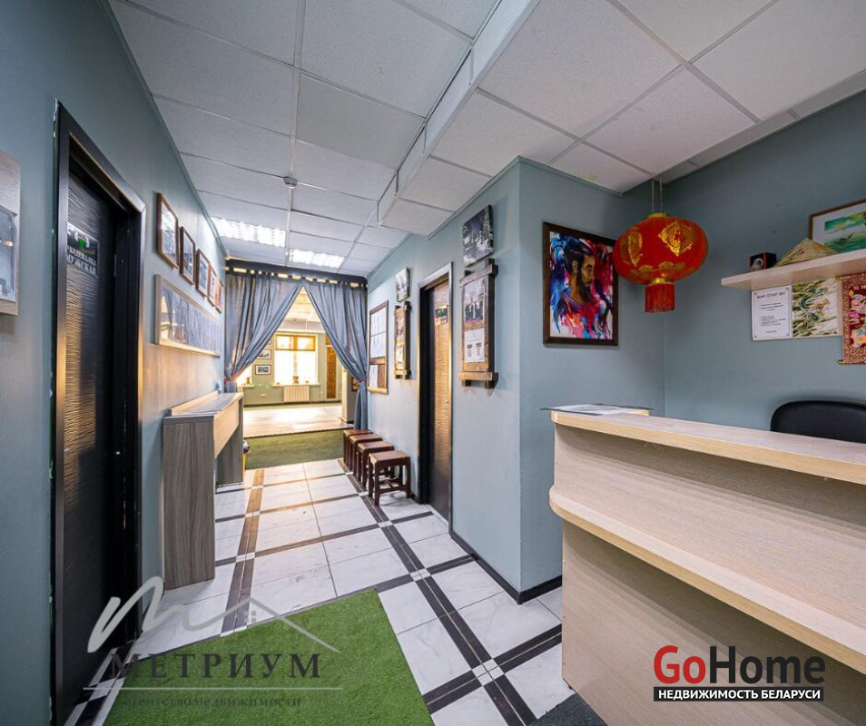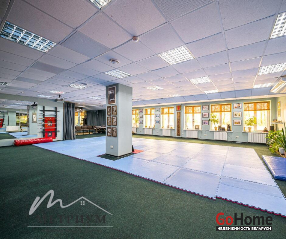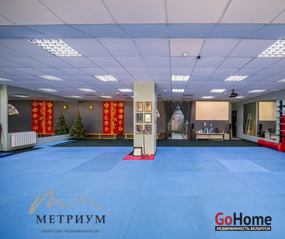 В помещении выполнен ремонт: потолок ARMSTRONG, на полу ковролин, стены под покраску. Просторный зал правильной формы с множеством окон и естественным освещением. Оборудован сан. узел, душевые, проведены все коммуникации.