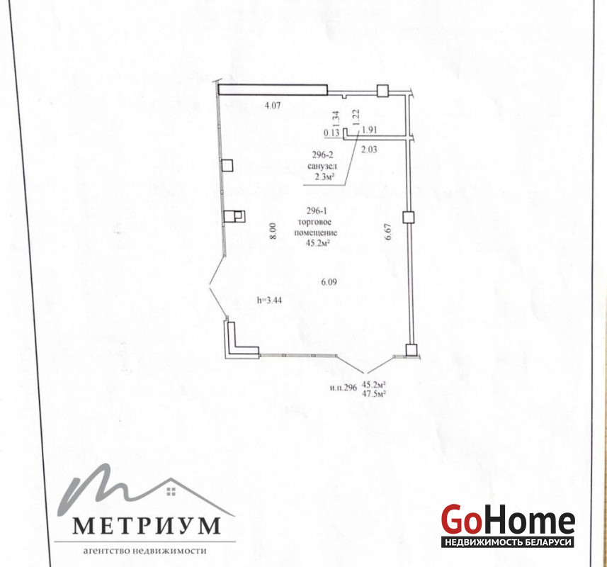 -Площадь: 47,5 квадратных метра, что позволит органично организовать рабочее пространство под любые нужды;
