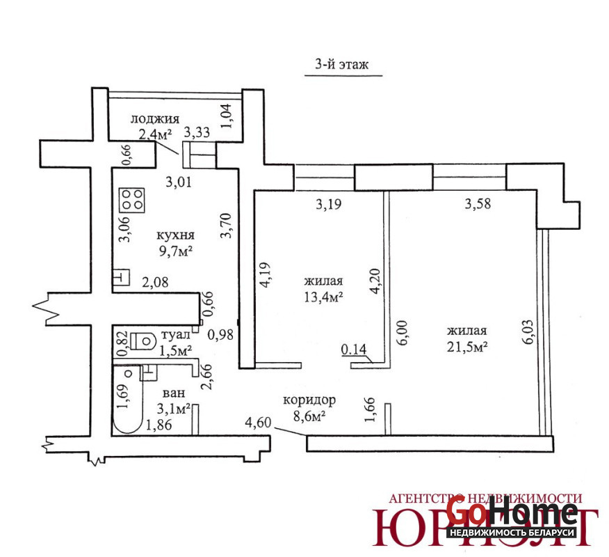 Общая площадь по СНБ – 60,2 м².