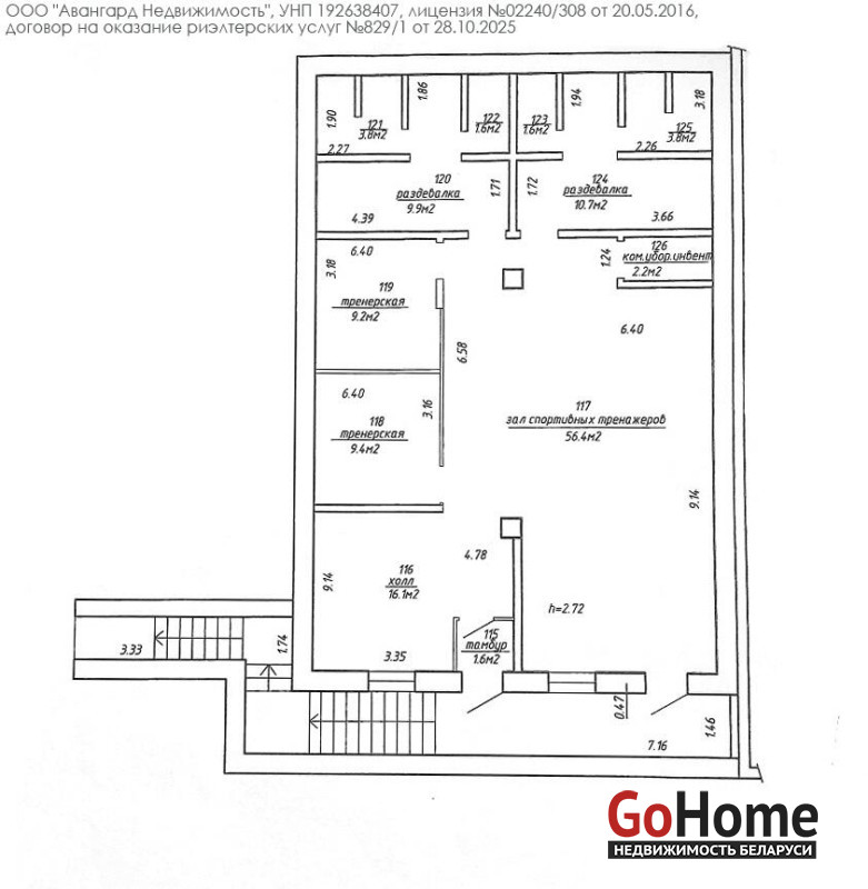 Продажа помещения с отдельным входом площадью 126,3 м2, расположенное по адресу: г. Минск, ул. Каховская, 17.