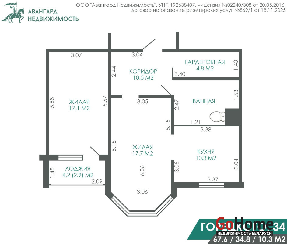 - Общая площадь составляет 67,6/34,8/10,3 кв.м. Квартира расположена на 4 этаже 10-ти этажного панельного дома 2015 года постройки. Благоустроенная детская игровая площадка, Интеллигентные соседи. Есть место для хранения велосипедов.