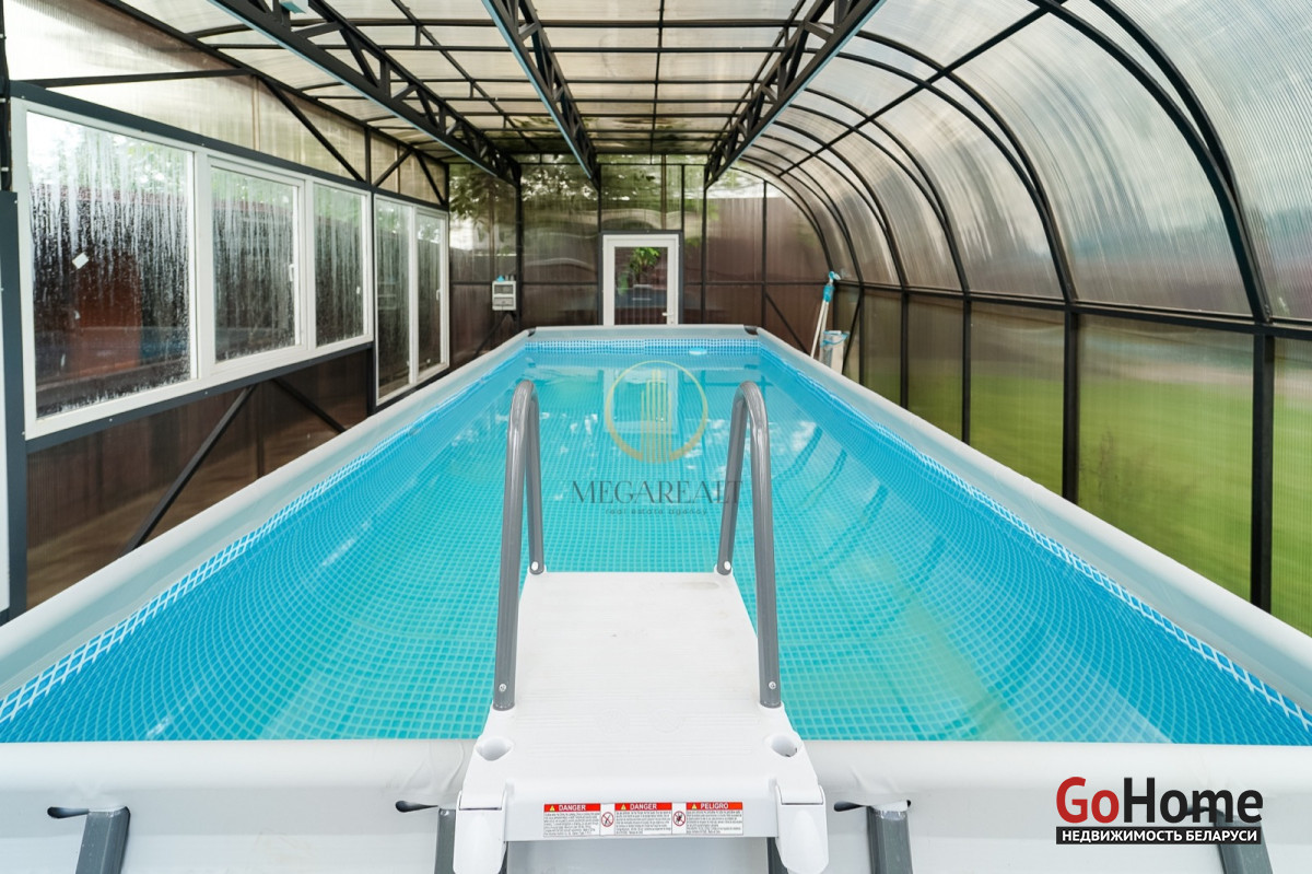 На участке выполнен ландшафтный дизайн, оборудован пруд. Так же на участке расположена отдельно стоящая баня, бассейн и оборудован навес для авто.