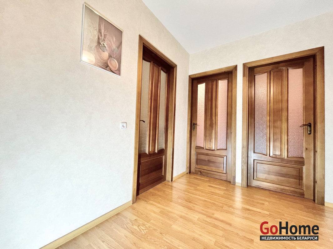 Чистая продажа(не покупается ничего взамен) со всей мебелью и бытовой техникой. Перед чистовой отделкой все стены и полы выровнены. В комнатах и коридоре профессионально уложен немецкий ламинат Кронотекс высшей категории прочности. В ванной комнате и туалете польская плитка. В кухне на полу линолеум. Окна- деревянные стеклопакеты. Всё в очень хорошем состоянии. Метраж квартиры: по СНБ 68,8 общ 66,7 комнаты 13,9 12,4 17,1 (все раздельные) кухня 8,9 , большая остекленная лоджия 4,2 с видом на зеленую аллею. Классическая мебель для гостиной, качественная, изготовленная из натурального массива дуба, в идеальном состоянии. Двуспальная кровать и две прикроватные тумбочки из массива ольхи и другая мебель. Квартира отделена от лестничной клетки тамбуром. В подъезде сделан ремонт. Все соседи тихие, интеллигентные люди. Удобное расположение дома в тихом месте. Рядом с домом детский сад и школа (не надо переходить дорогу),во дворе детские площадки, рядом гипермаркеты и минимаркеты, фитнес центр с бассейнами, парикмахерские, кафе, бары, детские сады, школы, поликлиника, Рядом живописный Лошицкий парк. Игуменский тракт и улица Маяковского с 4 мя полосами движения в каждом направлении до проспекта Независимости с большим количеством общественного транспорта. Удобный выезд на Минскую кольцевую автодорогу. Звоните, приходите на просмотр!