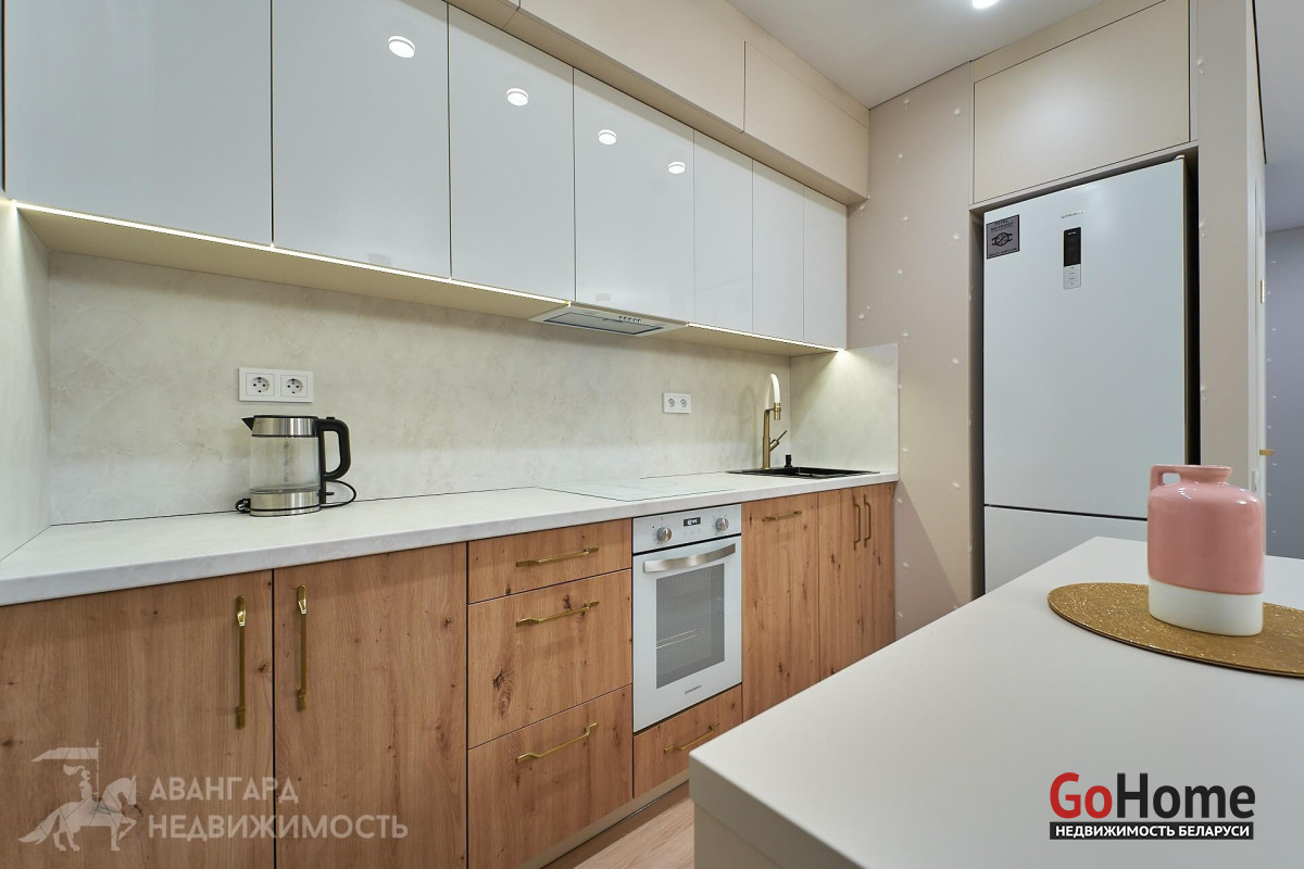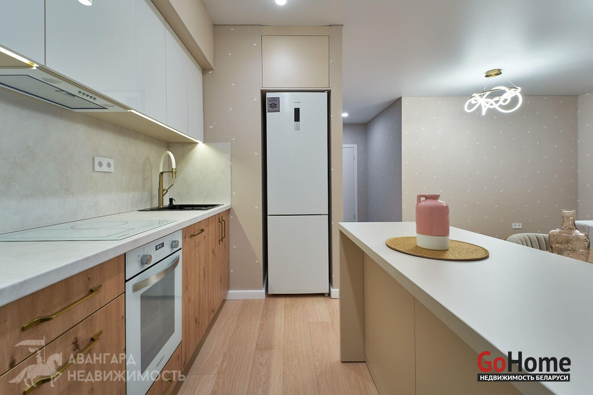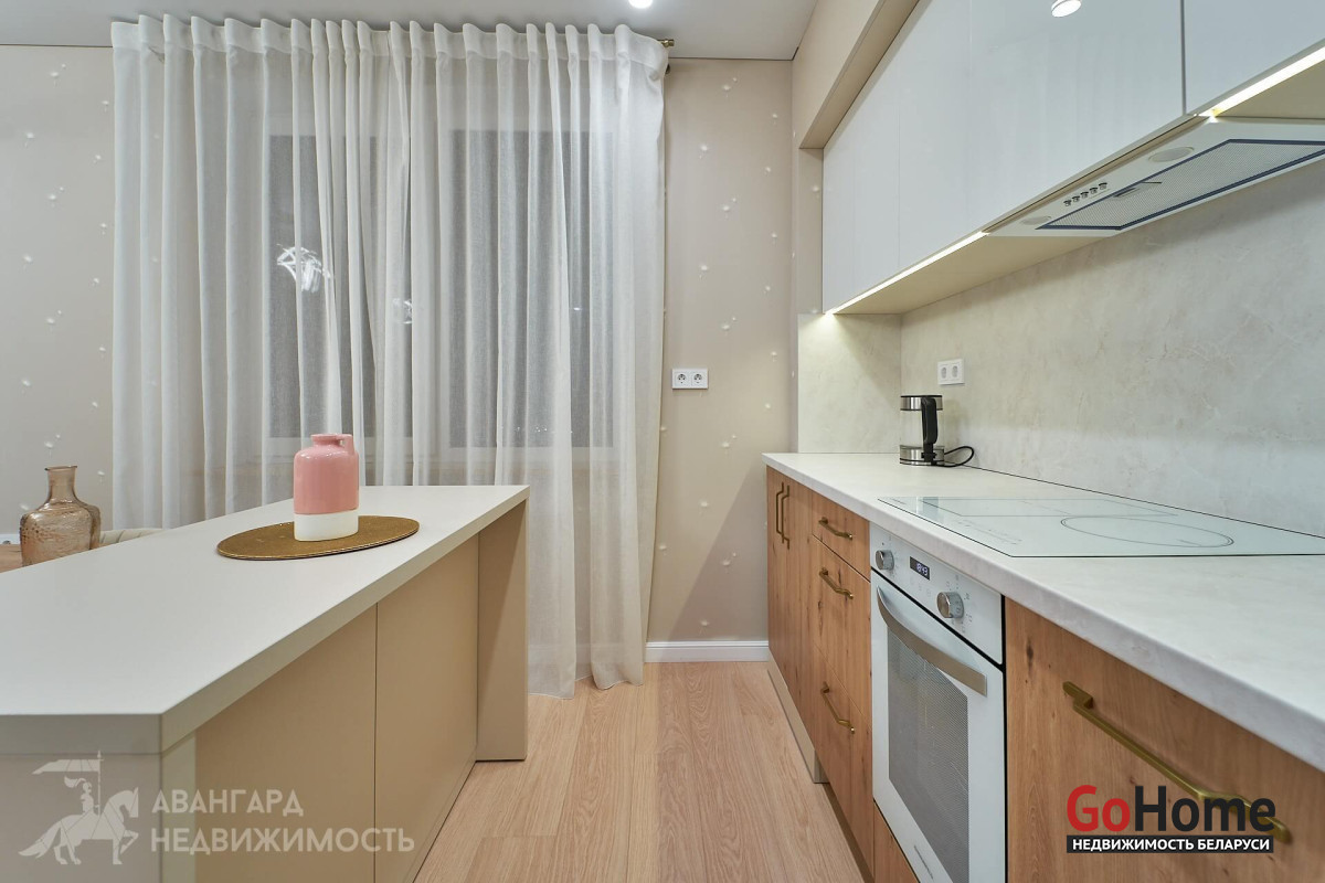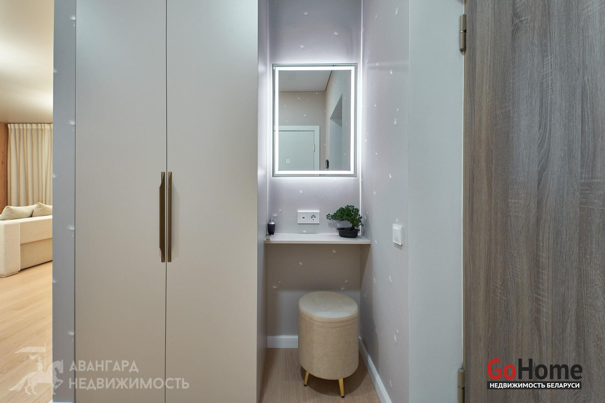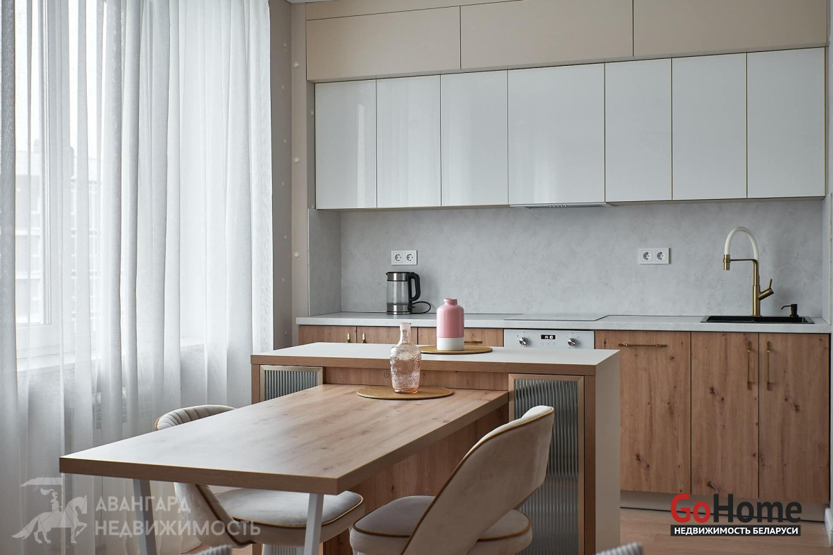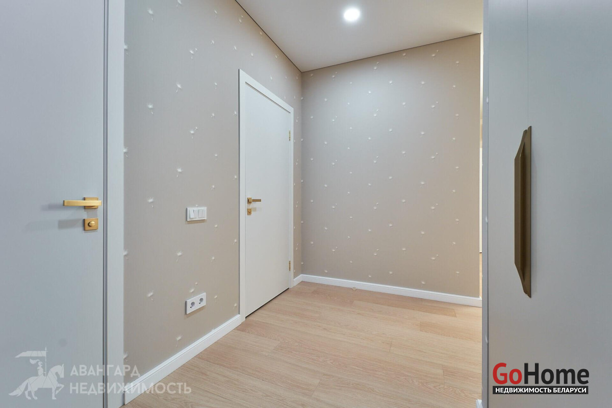Просторная атмосферная абсолютно новая евродвухкомнатная квартира с потрясающими видами на Минск с высоты 22 этажа в ЖК D3, выполнена по дизайн-проекту в экостиле в спокойных теплых тонах с применением исключительно высококачественных материалов, техникой и мебелью премиум класса из Европы.
