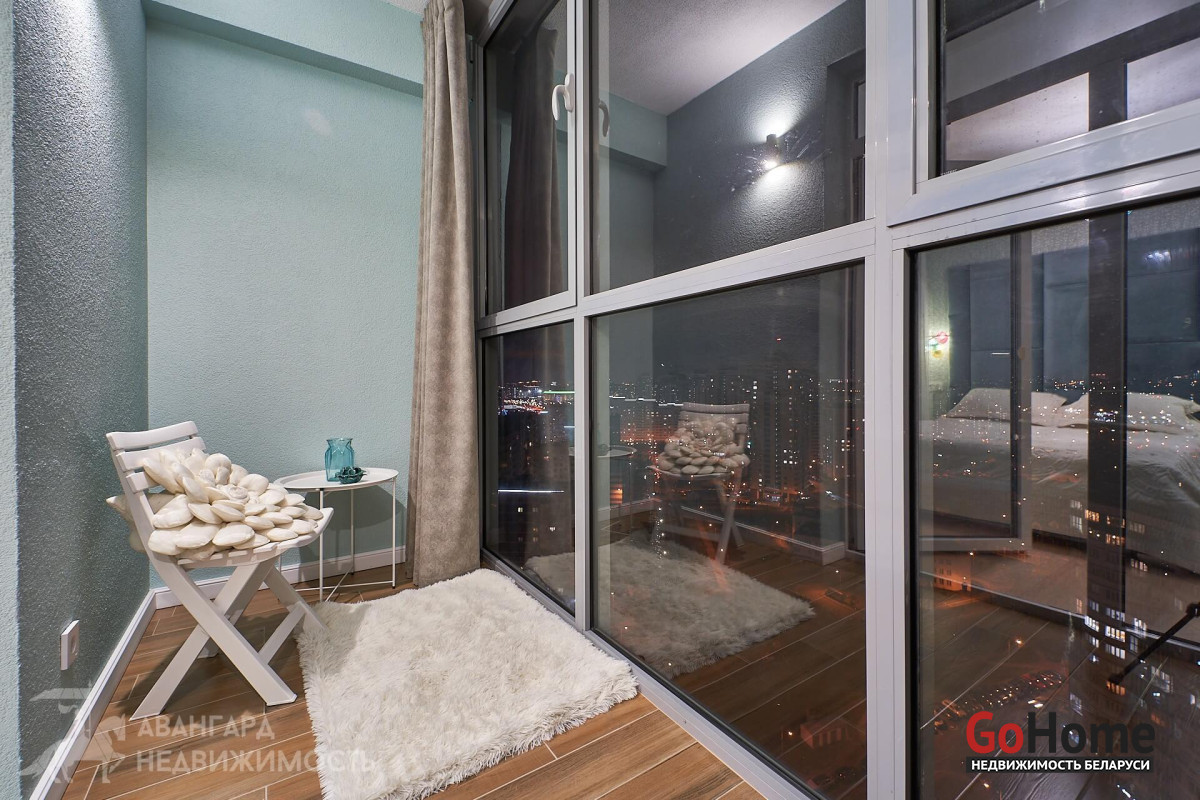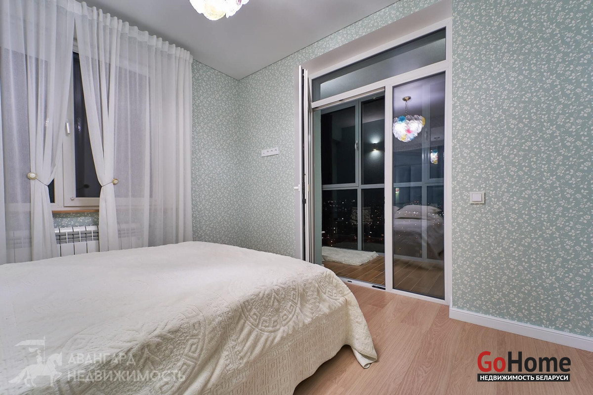 Из окон - волшебные виды на 2 стороны. Спальня с продолжением на балкон с остекленением в пол откуда открывается обзор на всю центральную и западную часть Минска. Особенно хочется подчеркнуть невероятные виды ночного города как уникальное преимущество северо-западной части жилого комплекса D3.