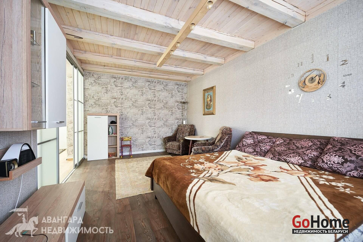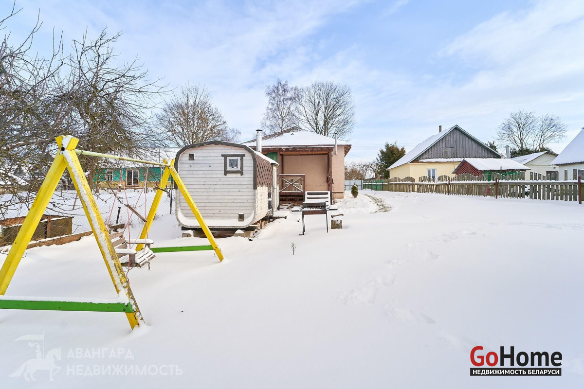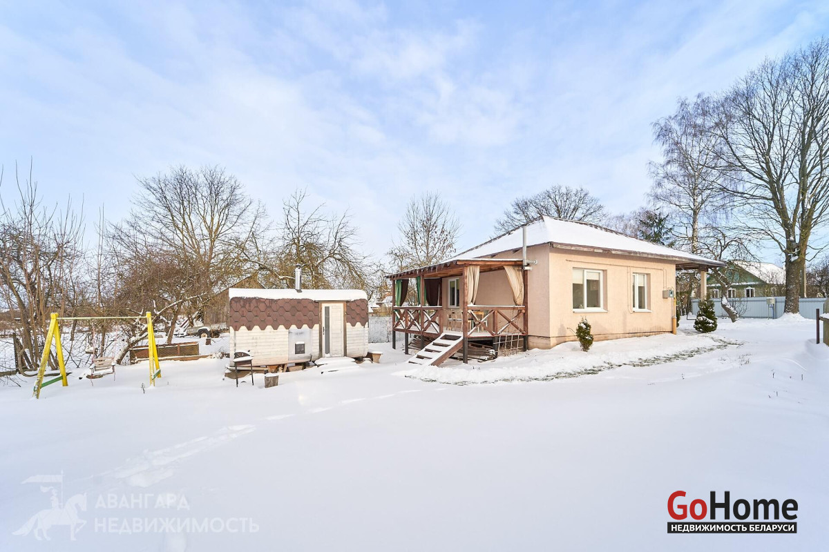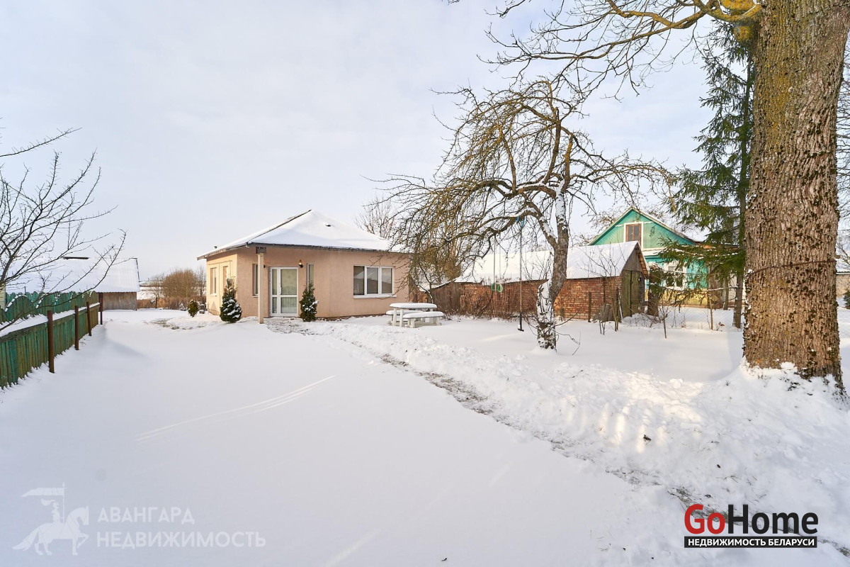 Предлагаем вам обратить внимание на этот уютный одноуровневый дом 2020 г. п., расположенный в аг. Озеро. Материал стен – газосиликатные блоки толщиной 30 см, дополнительно утеплены каменной ватой (20мм). Снаружи стены выровнены и оштукатурены. Крыша – металлочерепица. Все коммуникации разведены по дому, поэтому он подходит для круглогодичного проживания. Отопление на газу, центральное водоснабжение, местная канализация, электричество разведено по дому (380V). Забор по всему периметру участка.