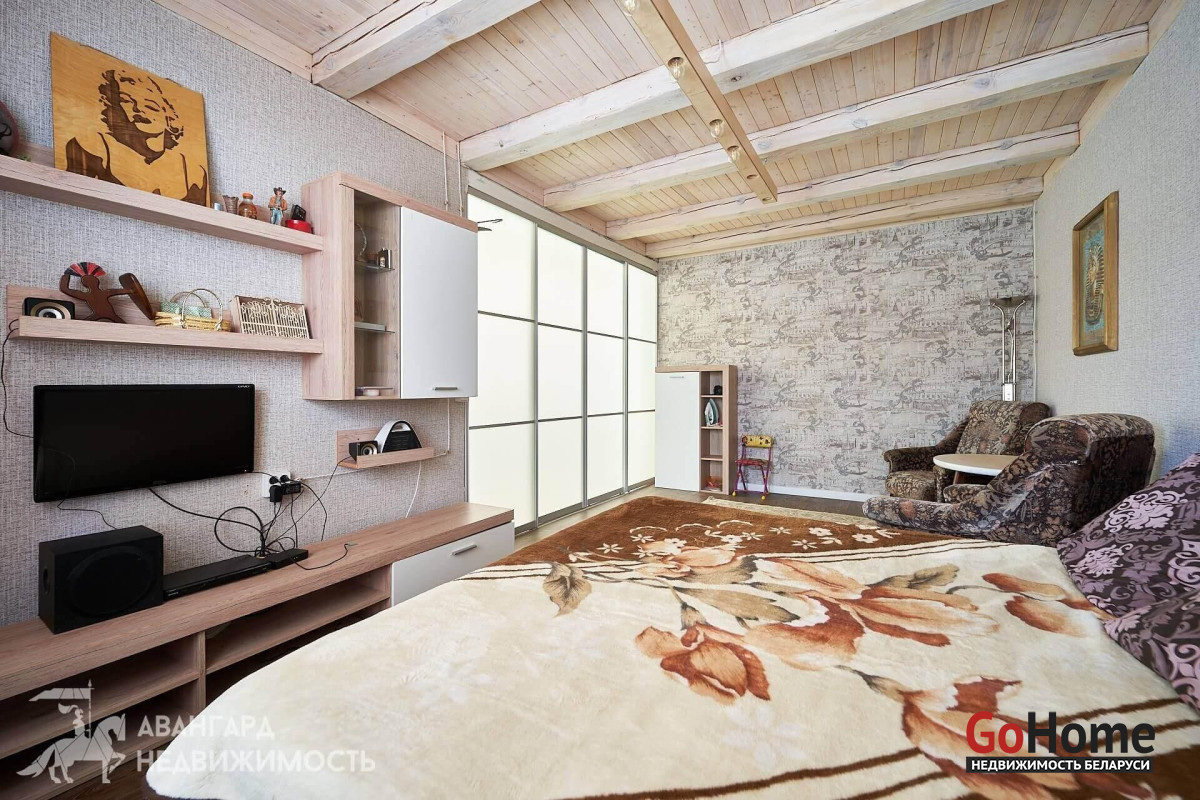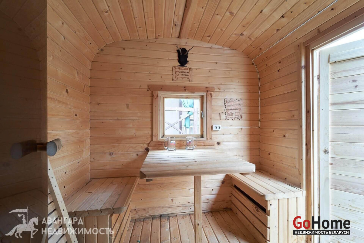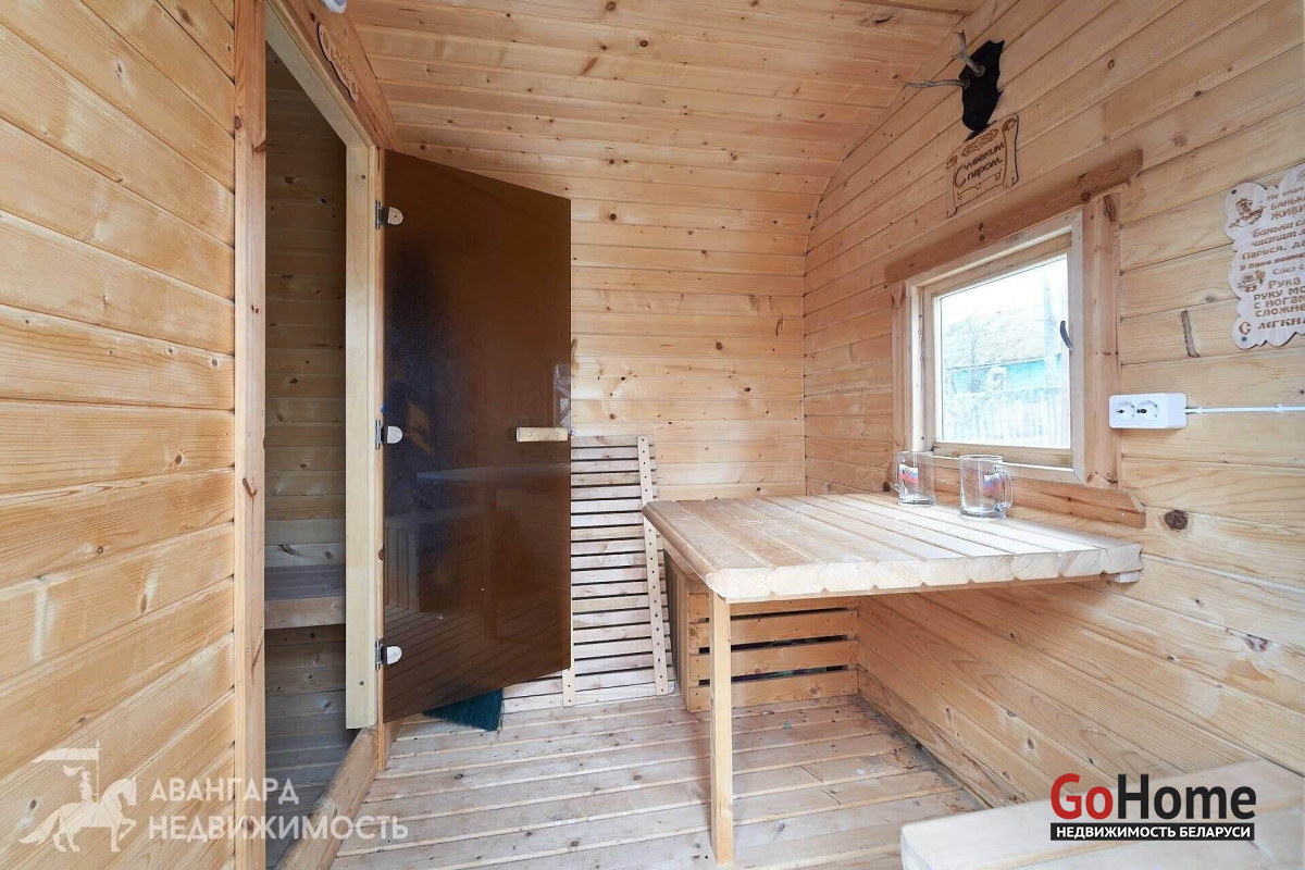 За домом расположена крытая терраса. Как приятно находиться там ранним утром, выпить чашечку ароматного кофе под пение просыпающихся птиц. Или отдохнуть вечером от шума и суеты, уютно утроившись в мягком кресле с любимой книгой в руках. А какие сочные шашлыки можно жарить прямо во дворе! Также есть своя баня, детские качели и батут. Каждый член семьи и ваш гость найдет себе развлечение и отдых по душе.