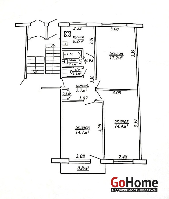 Общая площадь - 61,3 м²
