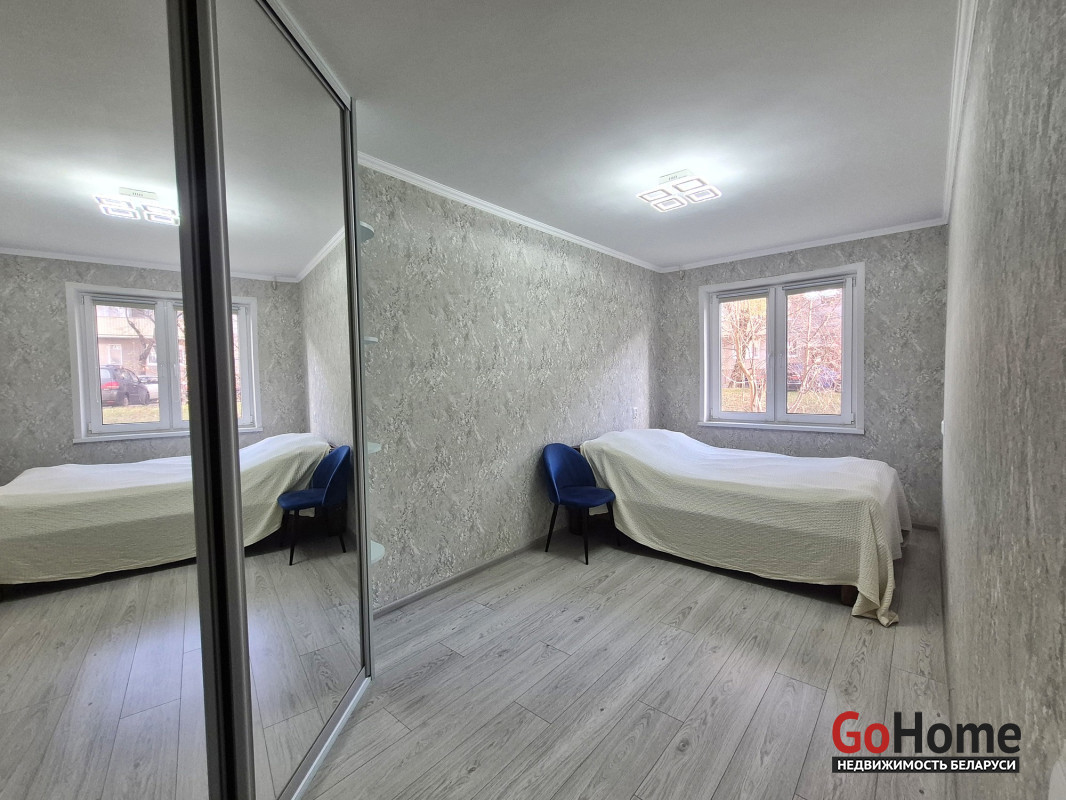 В квартире сделан новый ремонт. Полы выровнены - (залита стяжка) и утеплены пенополистеролем 5 см. Заменена электропроводка (медная) и сантехника. На полу в кухне и коридоре лежит плитка, в жилых комнатах - ламинат. Стены оклеены обоями. Потолки ровные покрашены.