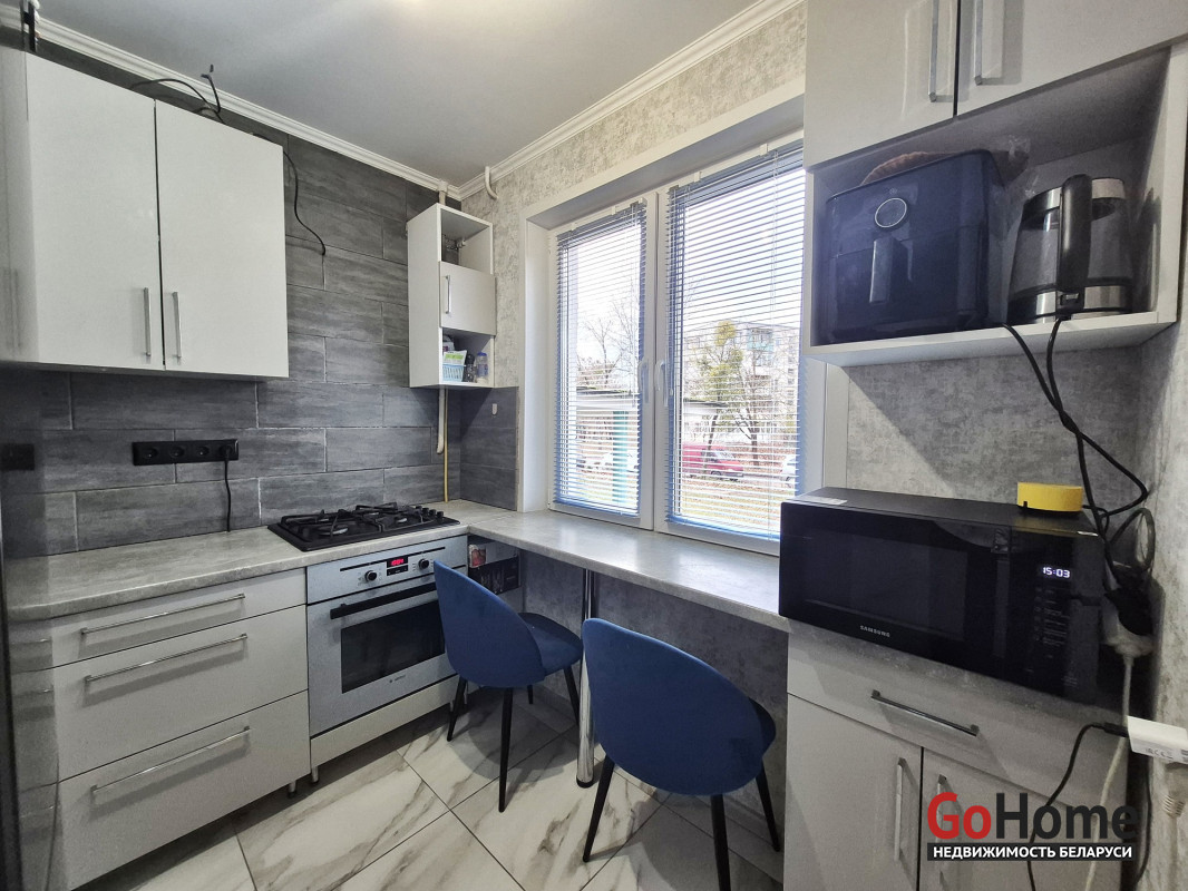 В квартире поменяны окна ПВХ. Балкон застеклен (окна ПВХ). В квартире остается кухонный гарнитур, варочная панель, духовой шкаф, два встроенных шкафа, потолочные люстры.