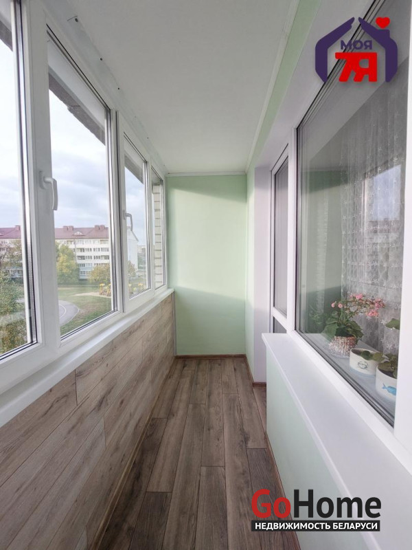 -Две застекленные лоджии, выходящие на разные стороны - ещё один весомый плюс. Они создают дополнительное полезное пространство: одна отлично подойдёт под зону отдыха с утренним кофе, вторая - для хранения сезонных вещей или организации мини-зелёного уголка.
