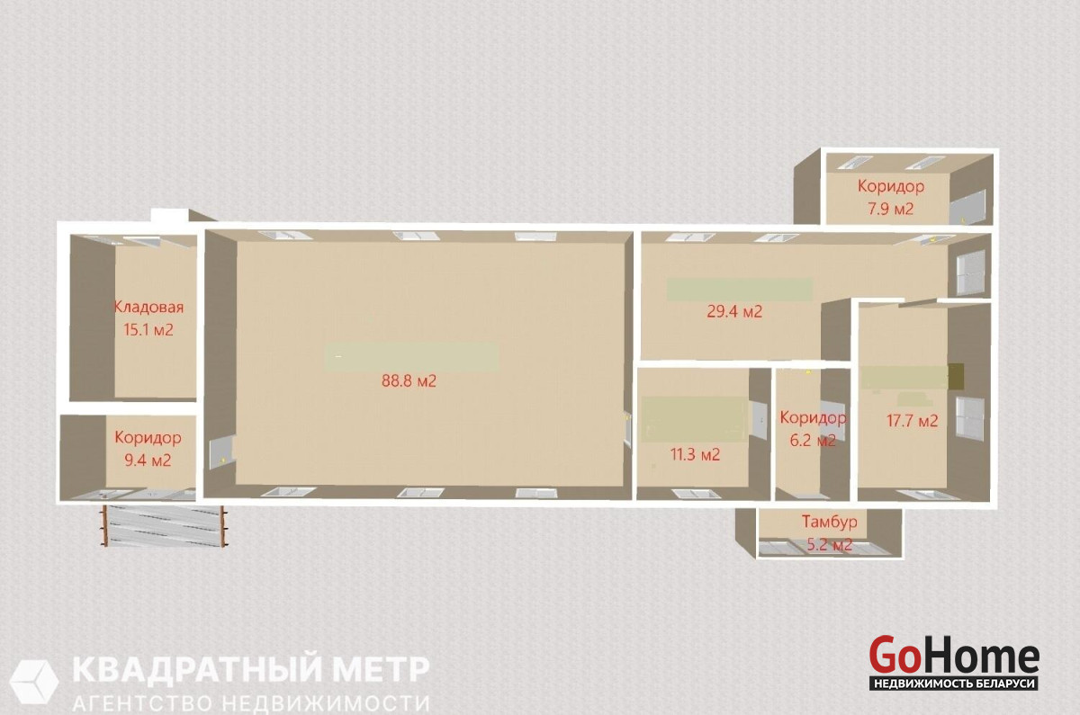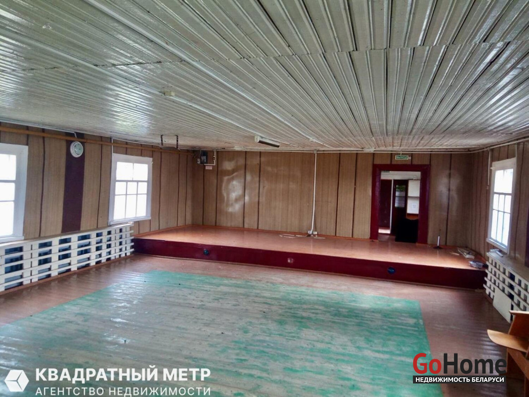 Здание раньше использовалось как дом культуры и библиотека. Участок площадью 27,9 сотки ровный и огорожен со всех сторон, расположен в центре агрогородка. Асфальтированная дорога до участка, тротуарная плитка – до самого дома.