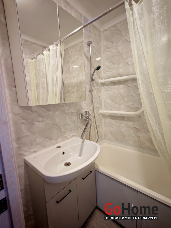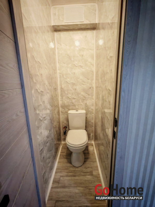 Санузел раздельный в туалете установлены счетчики воды, в ванной стиральная машина и обустроена удобная зона для умывания умывальник с тумбой и шкаф-зеркало для хранения всего необходимого.