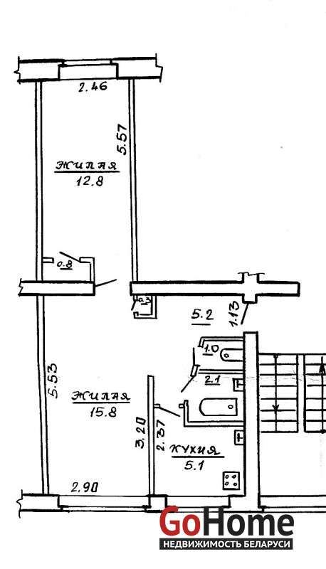 Квартира расположена на 2-ом этаже 5-ти этажного кирпичного дома 1970 года постройки. Без газовой колонки!