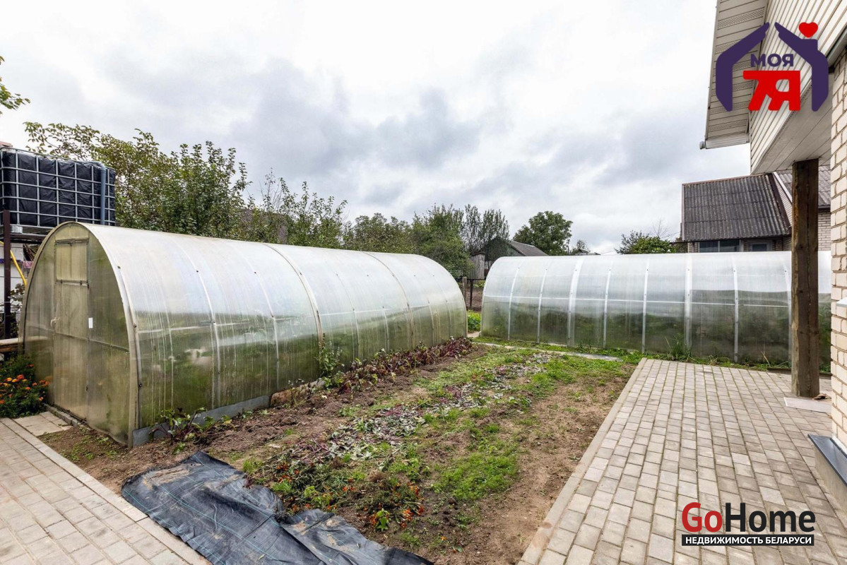 - Одноуровневый блочный дом 1995 года постройки общей площадью 117,5 кв.м. Внутри пять жилых комнат, просторная кухня 12,1 кв.м, совмещённый санузел и ванная комната с душевой кабиной. Имеется подвал. Планировка продумана до мелочей, что обеспечивает комфорт для всей семьи. Высокая мансарда позволяет реализовать любые идеи: можно утеплить крышу и оборудовать ещё 2–3 дополнительные комнаты.- Дом полностью готов к проживанию. Отопление газовое, водоснабжение центральное, канализация септик. Все коммуникации работают надёжно, обеспечивая удобство и комфорт в любое время года.- Земельный участок площадью 11 соток ровный, ухоженный и прекрасно подходит для отдыха и ведения хозяйства. На территории расположены огород, две теплицы и сарай для хранения инвентаря. Пространства достаточно как для сада, так и для уютной зоны отдыха с барбекю.- К участку предусмотрен подъезд с двух сторон, обустроены две стоянки для авто, вымощенные плиткой. Тупиковая улица обеспечивает тишину и безопасность, здесь нет лишнего движения автотранспорта, только спокойствие и уют.- Недалеко находится вся необходимая инфраструктура: магазины, школа, детский сад, большой спортивный комплекс, дом культуры, банки. - Отличная транспортная доступность: дом находится всего в 53 км от МКАД по Брестскому направлению, удобно и комфортно добираться до Минска на автомобиле. С городского автовокзала отправляются маршрутки на Минск каждый час, что позволяет легко и с комфортом добраться до Минска даже без автомобиля.