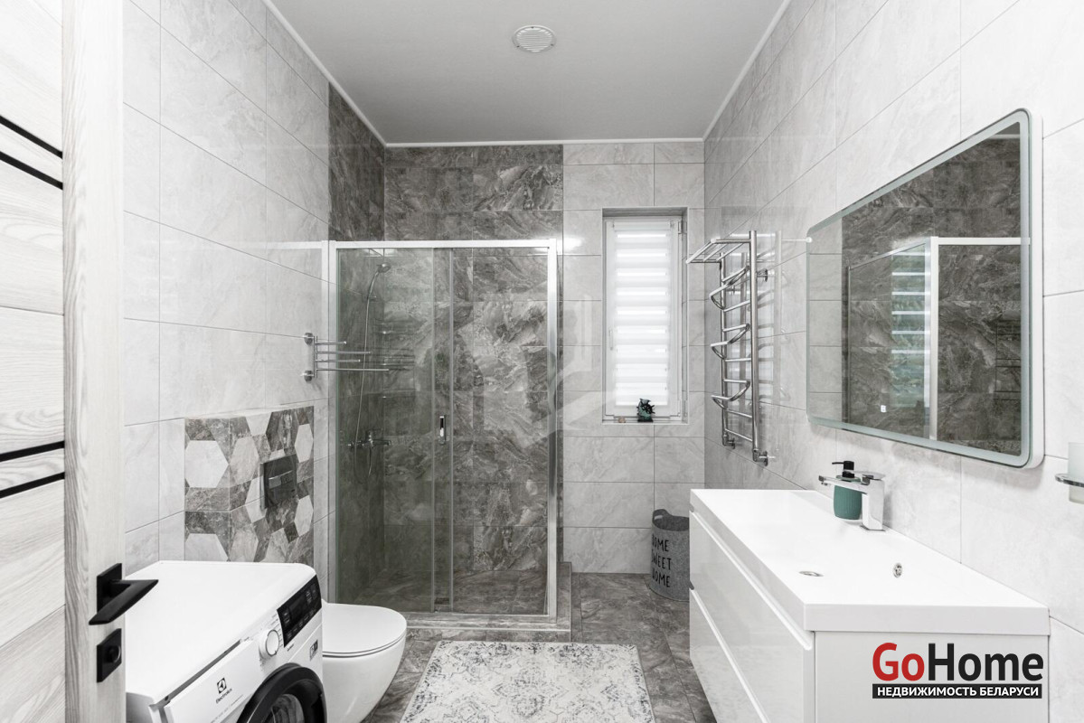 В живописном уголке Слуцкого направление, всего в 25 км от Минска, располагается современный дом, построенный в 2023 году, общей площадью 116,3 кв. м. Просторная жилая площадь составляет 80,9 кв. м, а кухня-гостиная площадью 36,9 кв. м становится центром семейных встреч и уютных вечеров. Интерьер дома оформлен в современном стиле, с акцентом на комфорт и удобство. Гардеробная и прихожая из качественного материалаов Egger создают гармоничный и стильный вход в дом. Спальни оборудованы кроватями и матрасами от известной марки Аскона, что обеспечивает отличный отдых. Модульный диван с возможностью разложения, а также телевизор LG с диагональю 55 дюймов, создают атмосферу уюта для вечерних просмотров. Кухня, выполненная из Egger, оснащена современными встроенными приборами: индукционной панелью, холодильником "Beco", духовым шкафом Electrolux и посудомоечной машиной. Дополняют функциональное пространство вытяжка Maunfeld, фильтр для воды с обратным осмосом и мойка "Teka". Кухонный стол с покрытием из искусственного камня раскладывается, что удобно для приема гостей. Отопление в доме обеспечивается газовым котлом Ariston с управлением по Wi-Fi, что позволяет поддерживать комфортную температуру в любое время года. Для удобства в уборке предусмотрены ручной пылесос Dreame и робот-пылесос Xiaomi, а стиральная машина Electrolux делает стирку легкой и быстрой. В ванной комнате установлено зеркало со встроенной подсветкой, теплые полы и продуманное освещение террас и входной группы создают атмосферу домашнего уюта. Незабываем и про баню )На участке расположена отдельно стоящая просторная баня размером 6х8,3 м, которая идеально вписывается в окружающую природу. Внутри имеется уютная гостевая комната и терраса, где можно насладиться свежим воздухом. Баня оснащена мощным чугунным котлом на дровах, что создает настоящую атмосферу русской парной. Также предусмотрены санузел и душ, обливное ведро и электрический теплый пол, что обеспечивает максимальный комфорт во время процедур. Так же расскажем про участка и хозяйственный блок Участок площадью 15 соток окружен ухоженным садом, где высажены разнообразные декоративные и плодовые растения. В саду растет множество цветов, включая 25 кустов роз, гортензии, магнолию, юкку и жасмин, создавая живописный ландшафт. Плодовые деревья, такие как груша, слива, черешня и семь яблонь, радуют урожаем, а ягодные кусты, включая малину, смородину и голубику, добавляют разнообразие. На участке также предусмотрены благоустроенные грядки и две теплицы, что делает его идеальным для любителей садоводства. Хозпостройка включает в себя погреб, выложенный из кирпича, как баня, и дровник, что обеспечивает удобное хранение запасов. Забор с откатными воротами и распашные ворота на заднем дворе обеспечивают безопасность и уединение, создавая идеальную атмосферу для жизни и отдыха в гармонии с природой. Каждый элемент этого дома и участка продуман до мелочей, создавая уникальное пространство для комфортной жизни и отдыха.