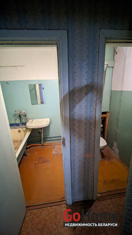 Состояние квартиры — под ремонт. Интерьер сохранил черты советской эпохи: обои, мебель, сантехника — всё требует обновления.
