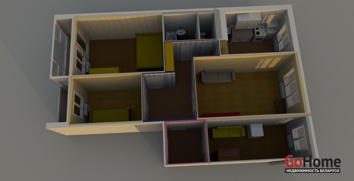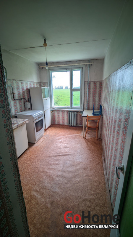 Из окон открываются приятные виды: с одной стороны - зелёный двор, с другой - поле. Лоджия вытянутая, удобная, с возможностью обустройства зоны отдыха. Планировка классическая, без проходных комнат. Санузел раздельный.