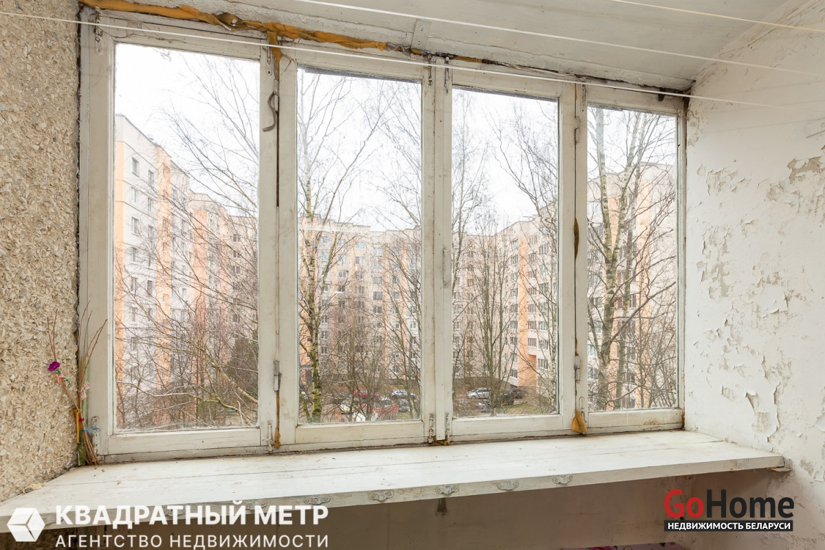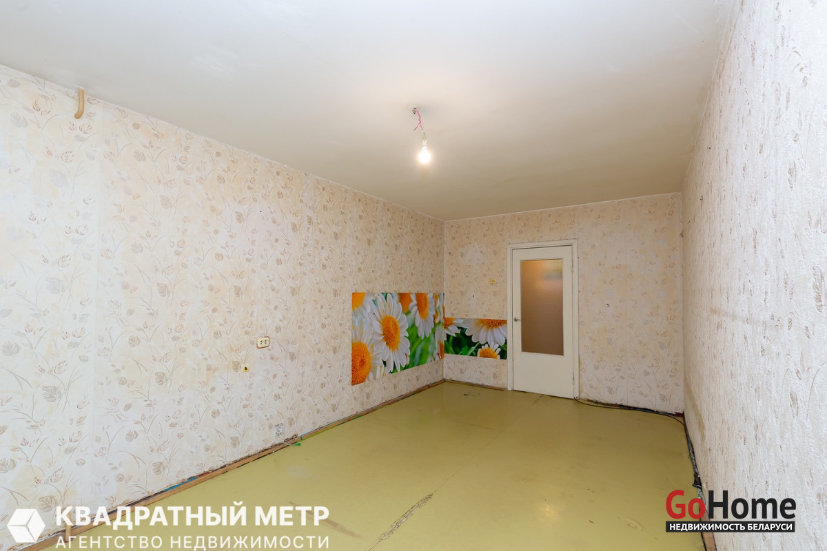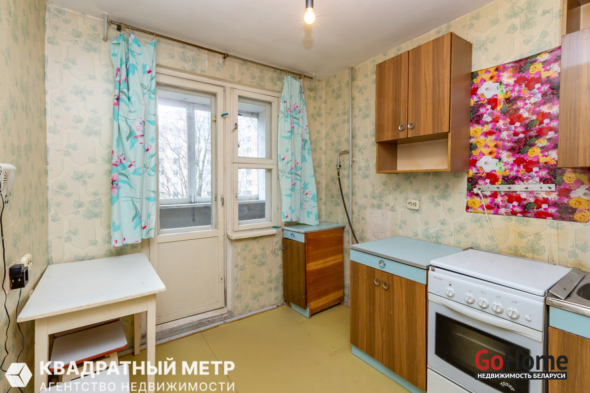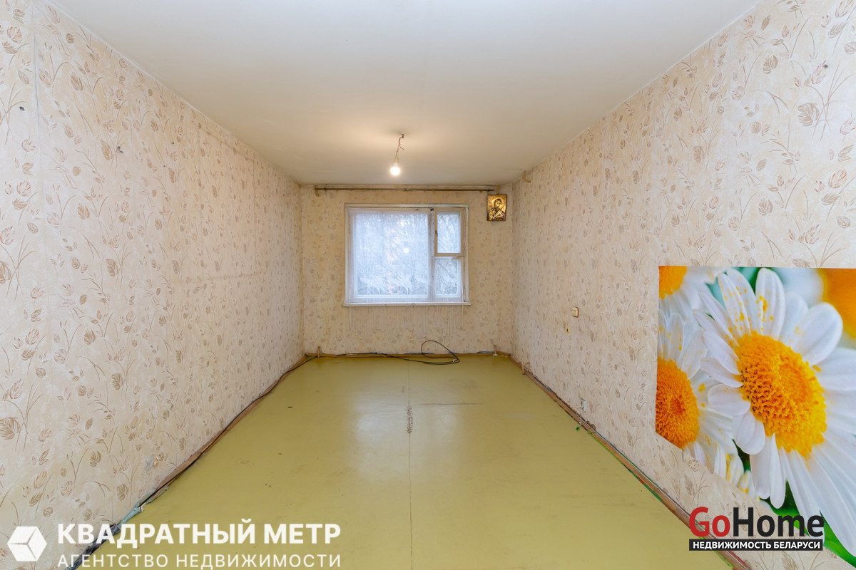 Продаётся 1 комнатная квартира под ремонт с вашей фантазией в Минске – Фрунзенский район, ул. Лещинского, дом 15, на 4 этаже 9 ти-этажного панельного дома, не угловая по расположению дома 1987 года постройки. До метро Кунцевщина - 5 минут пешком.