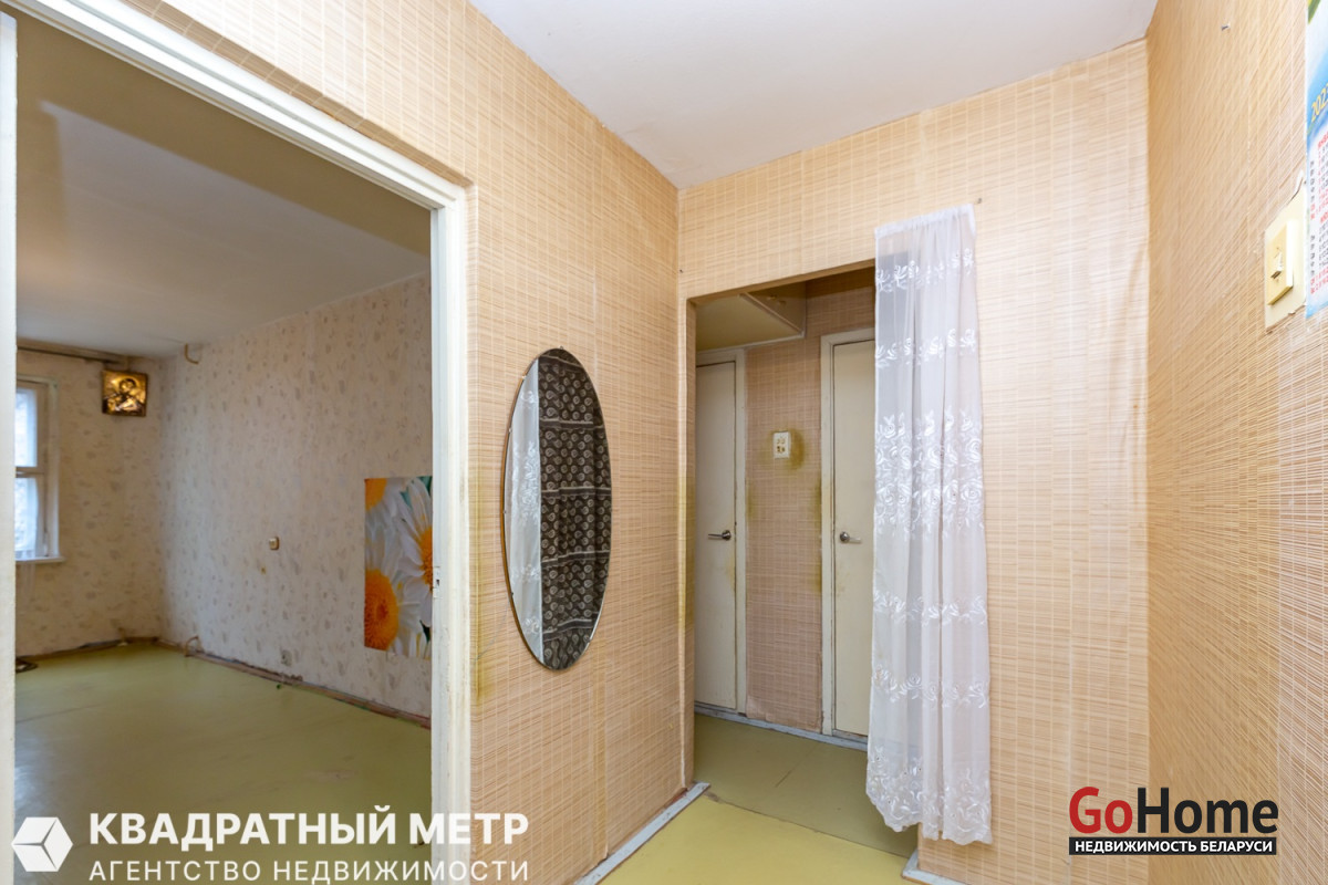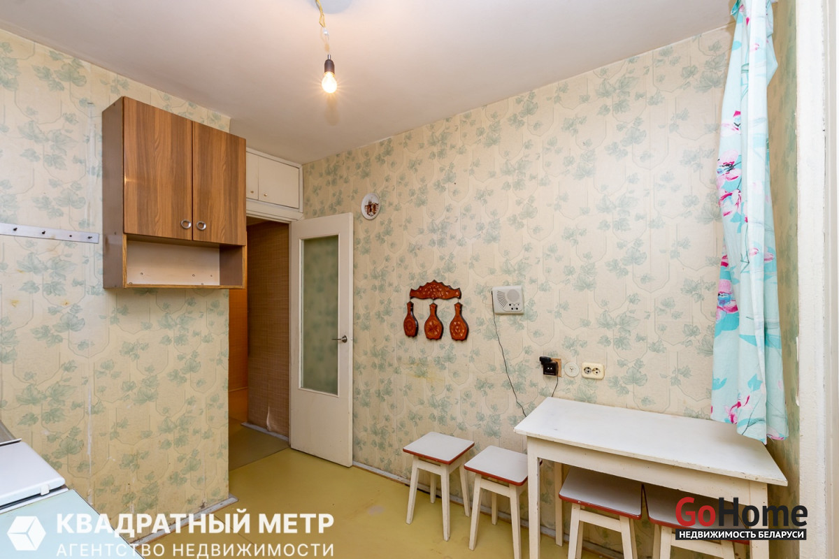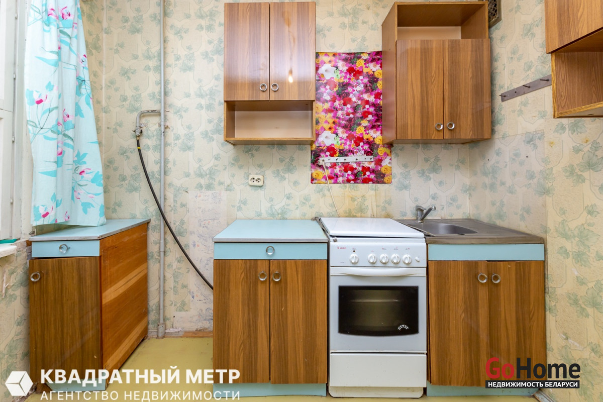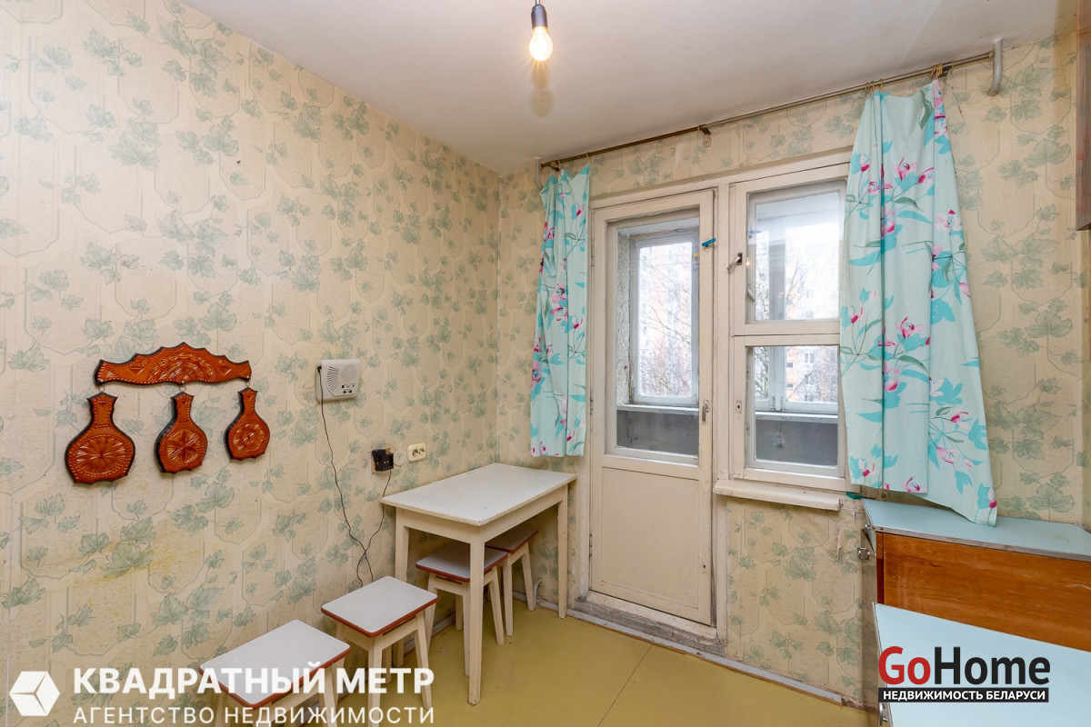 Продаётся 1 комнатная квартира под ремонт с вашей фантазией в Минске – Фрунзенский район, ул. Лещинского, дом 15, на 4 этаже 9 ти-этажного панельного дома, не угловая по расположению дома 1987 года постройки. До метро Кунцевщина - 5 минут пешком.