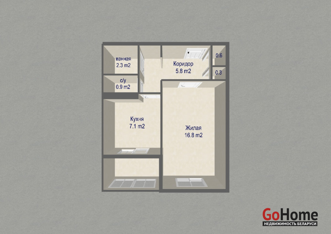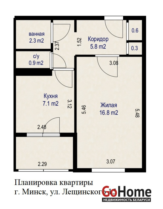 - Жилая комната: 16,8 кв.м.