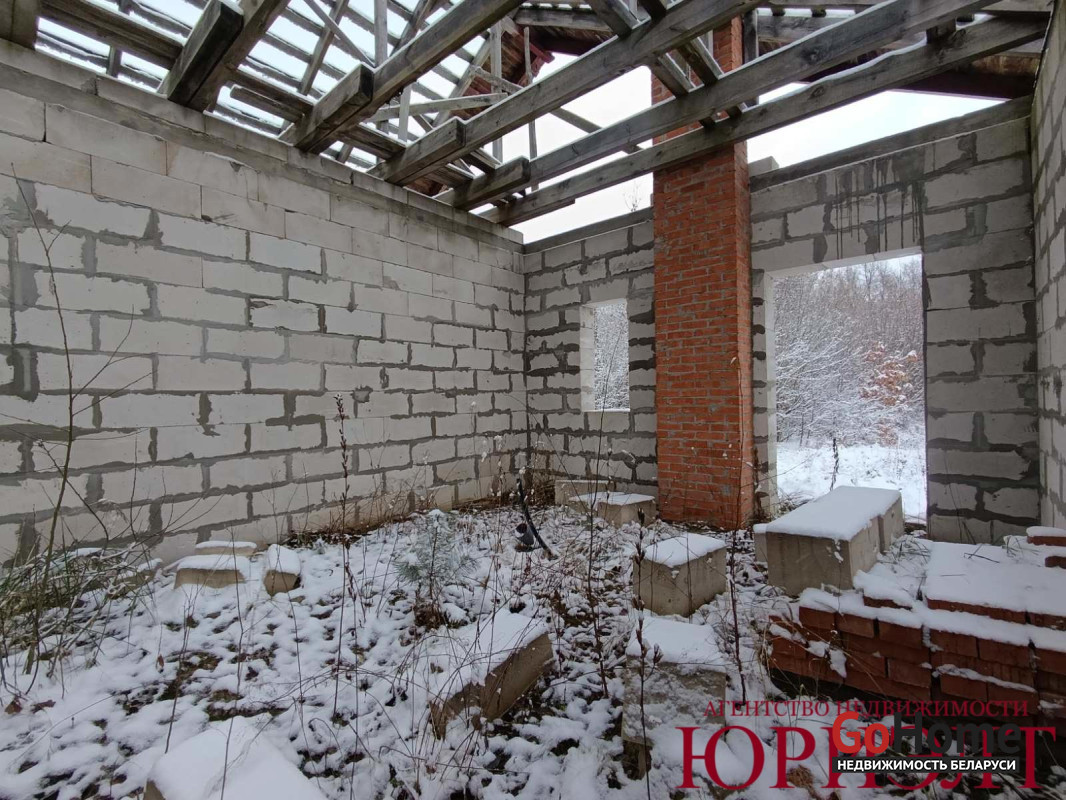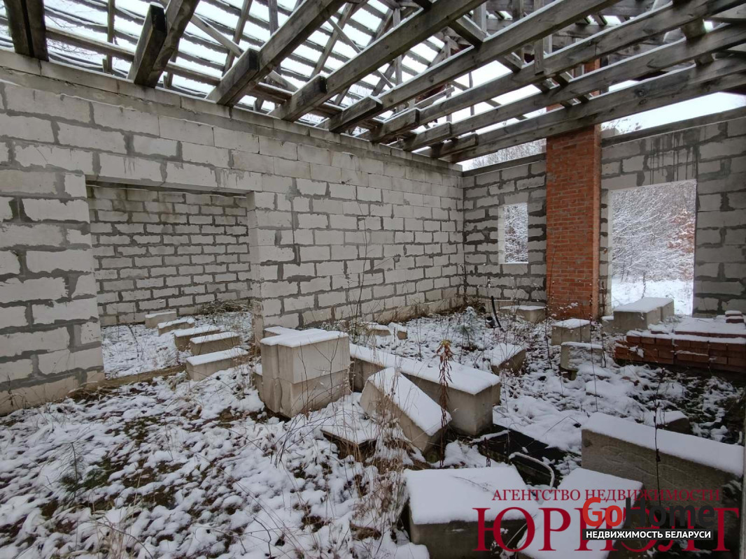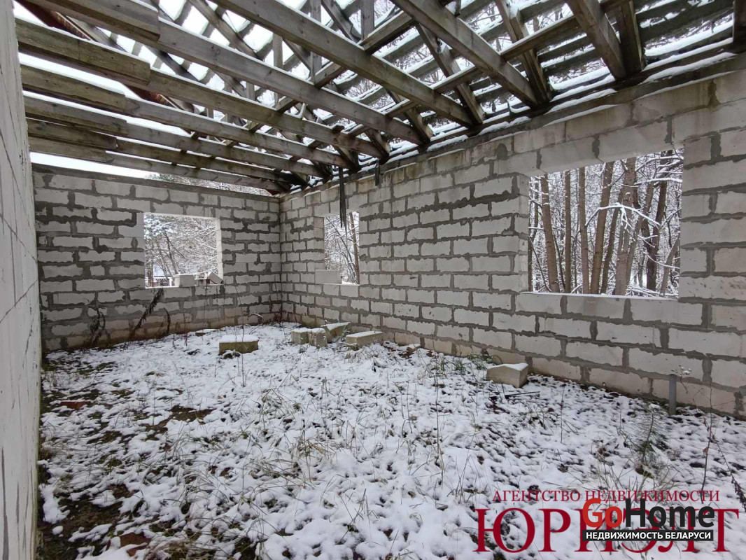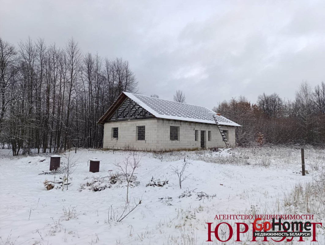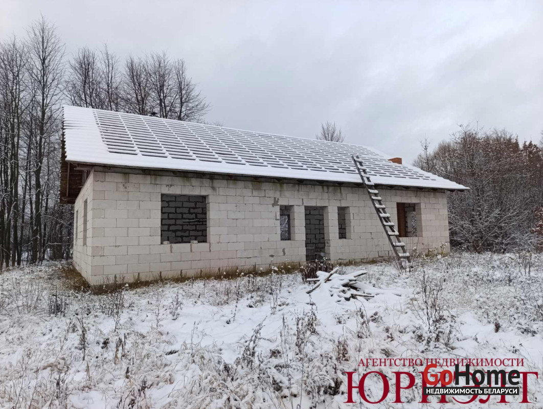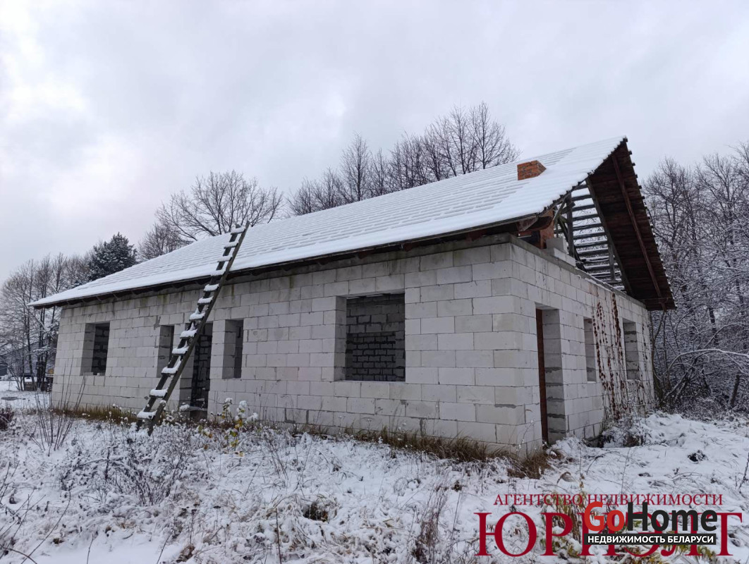 На участке расположен одноэтажный дом (НЗКС) площадью 129 м² с тремя комнатами. Стены дома выполнены из блока.