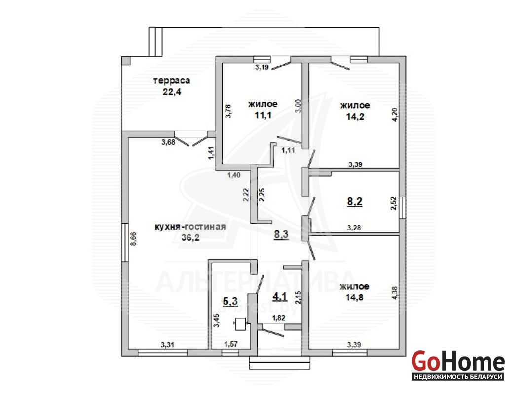 Дачный дом жилого типа в Брестском р-не. 2025 г.п. 1 этаж. Общ. - 108,9 кв.м. 4 комнаты.