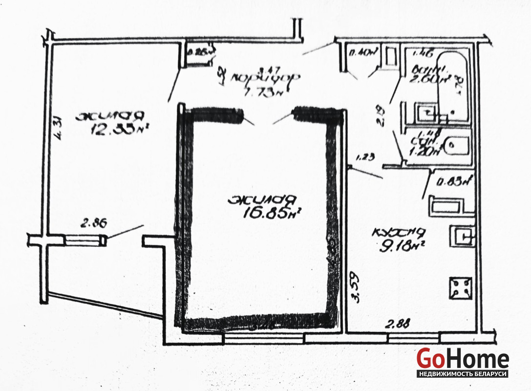 Общая площадь квартиры - 51 м.кв. Широкие жилые комнаты. Просторная кухня - 9 м.кв. Раздельный санузел.