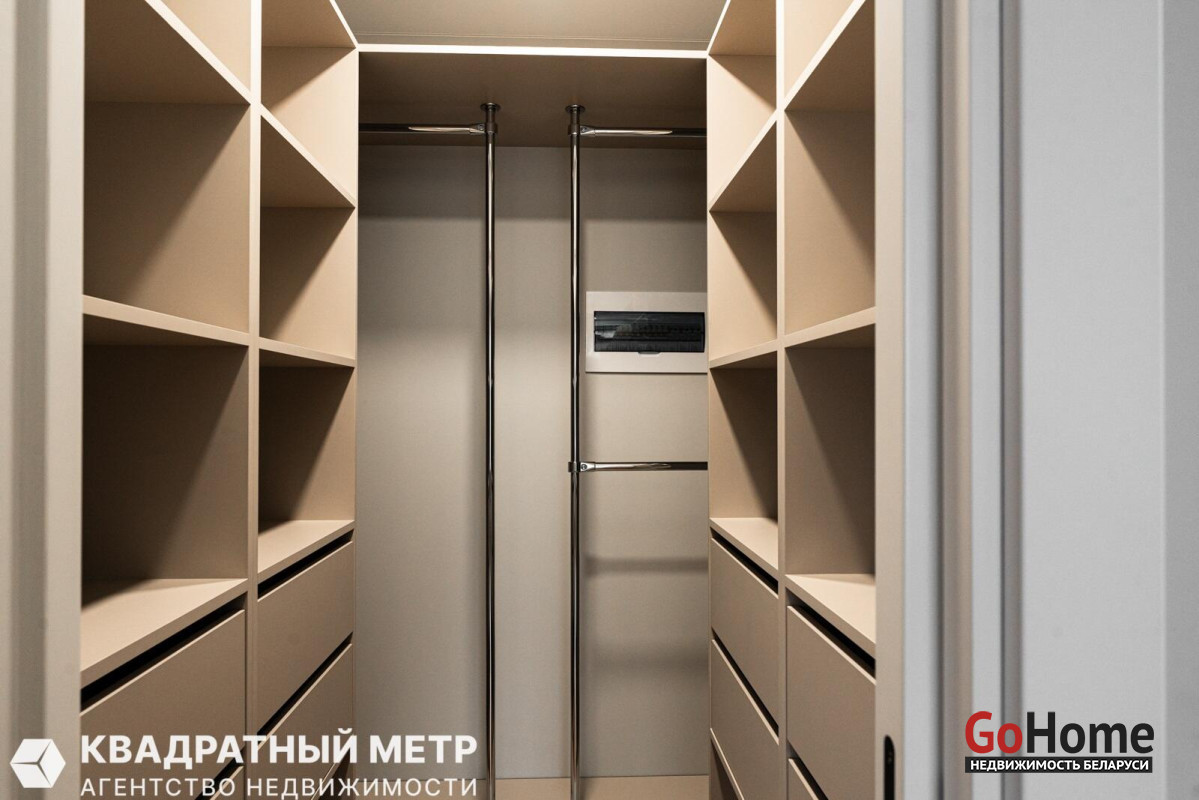 Вместительная гардеробная комната, уютная гостиная и просторная спальня, в которой можно организовать рабочее место.