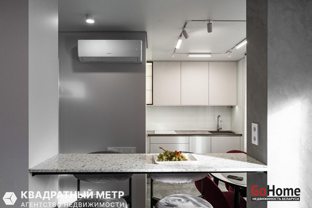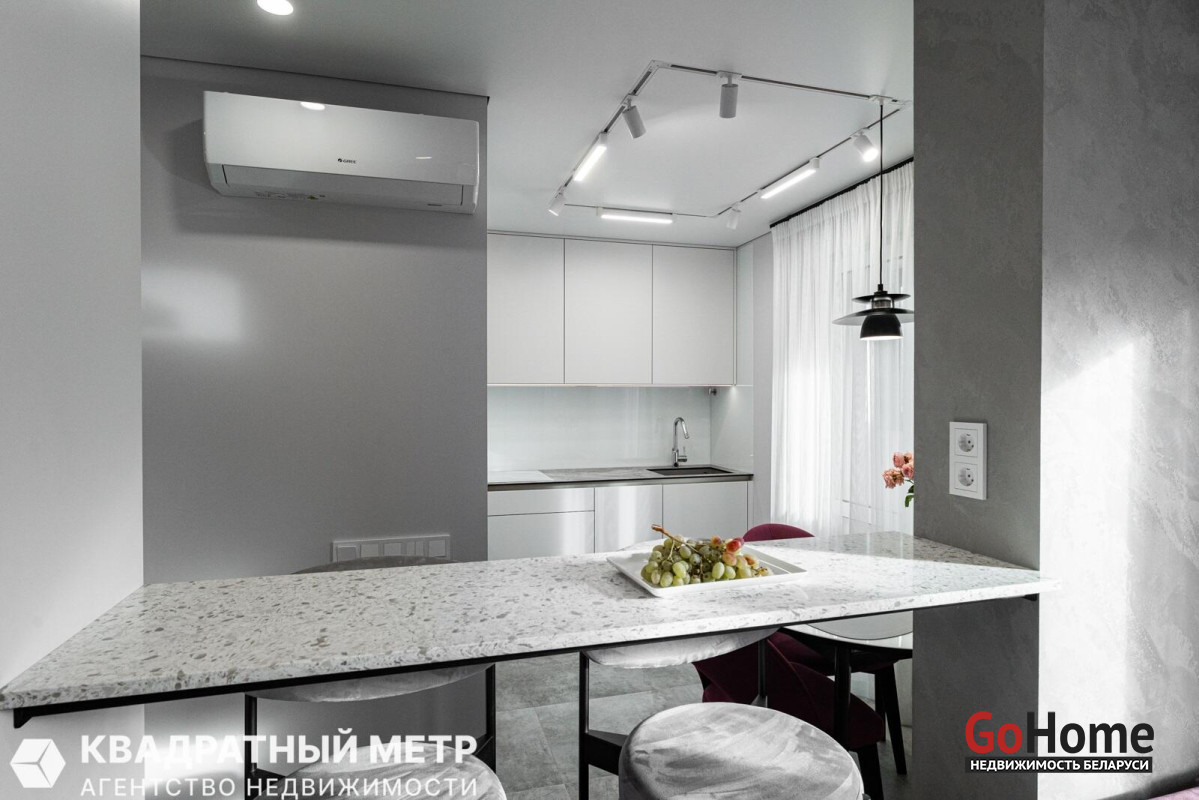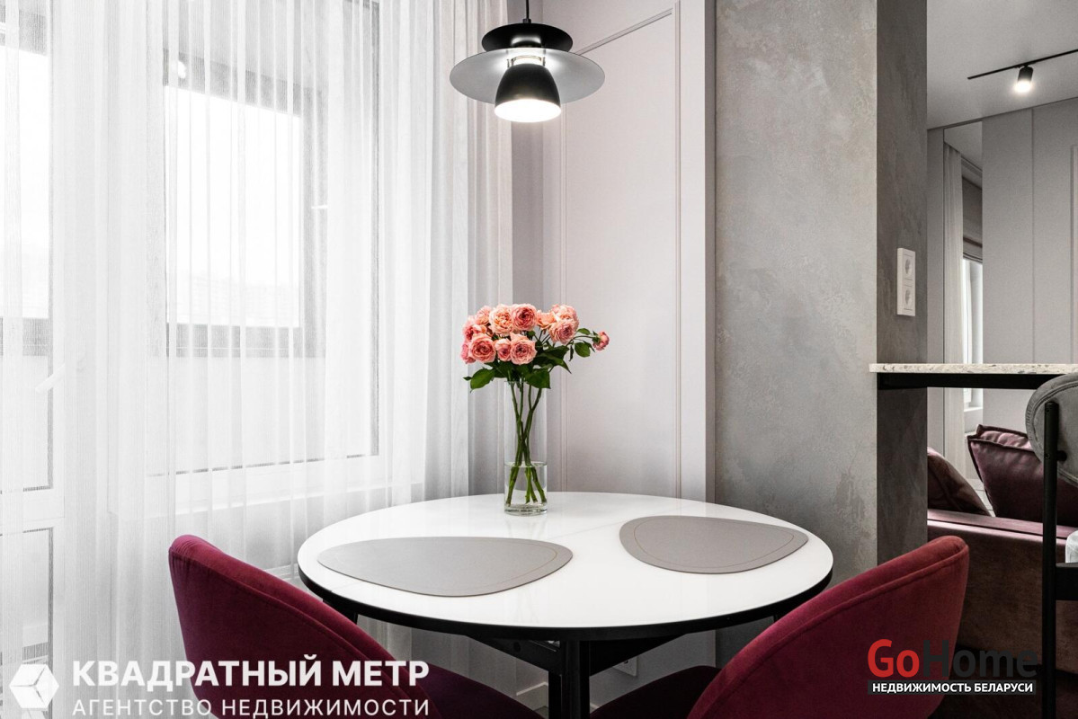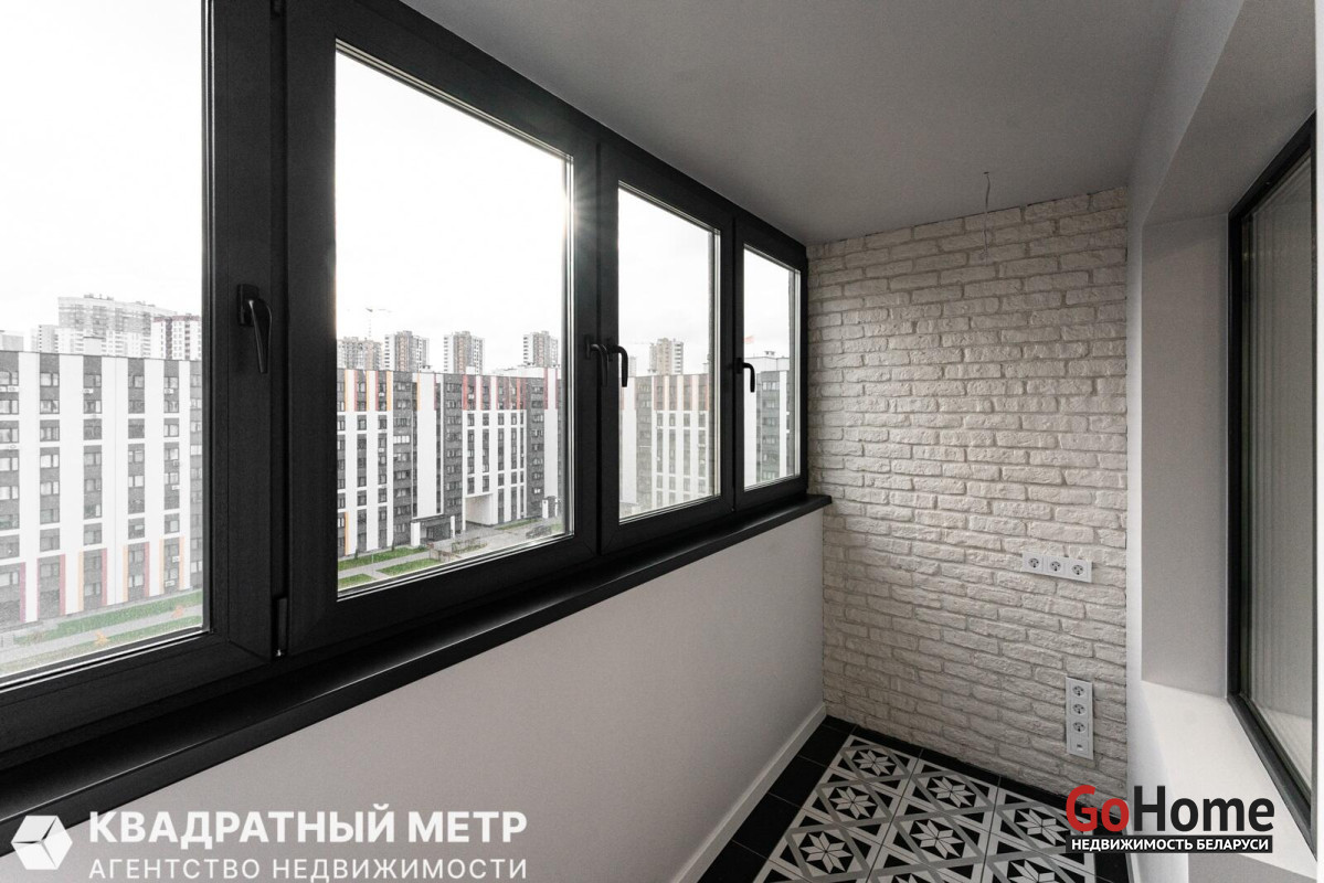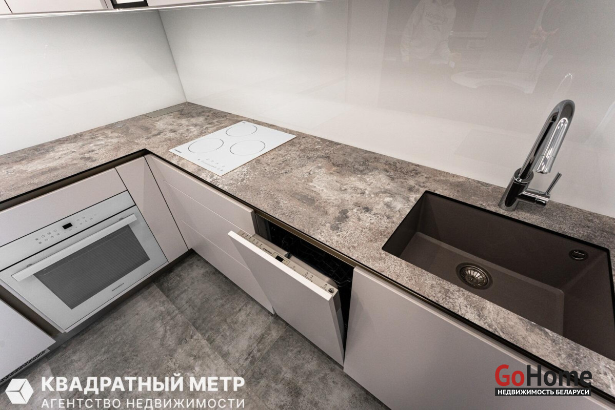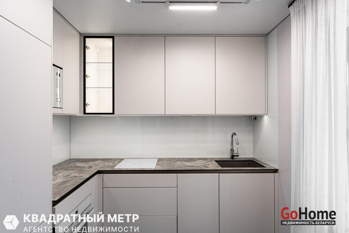 Кухонный гарнитур с окрашенными фасадами, фурнитурой Blum и всей необходимой бытовой техникой. Утепленная лоджия, заменены окна ПВХ, на полу керамогранит.