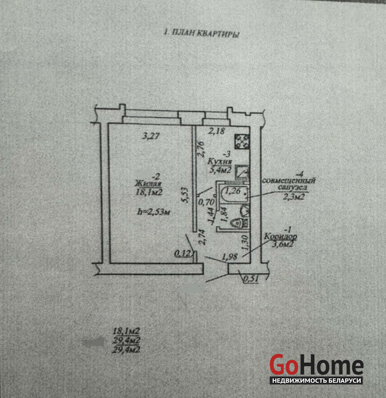 Площадь: 29,4 м, оптимальная для комфортного проживания.