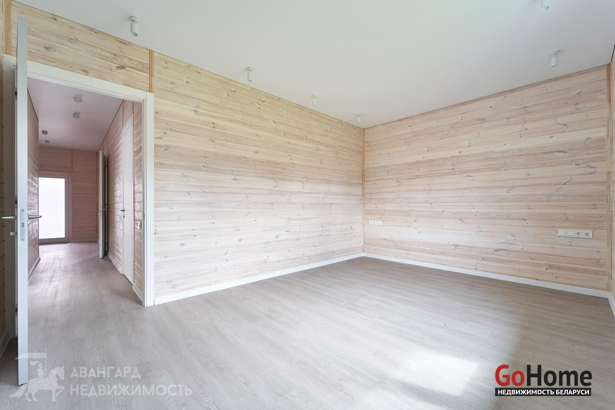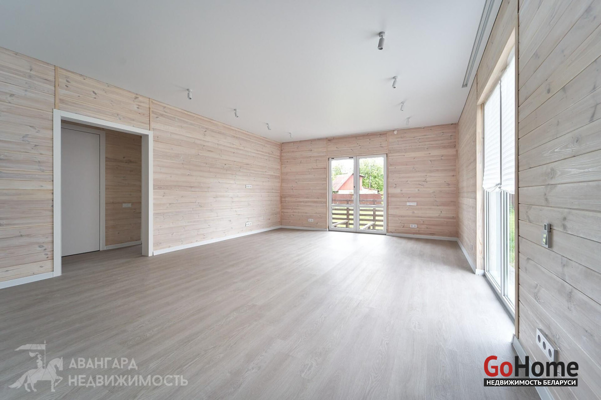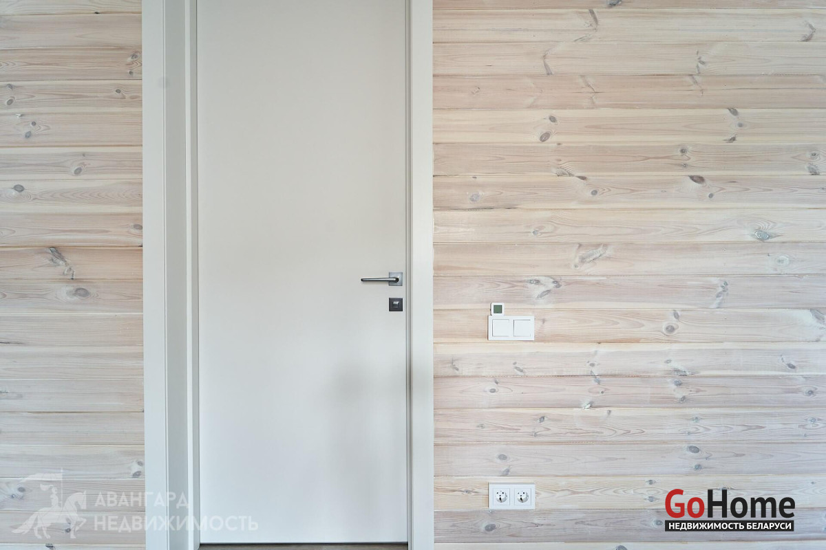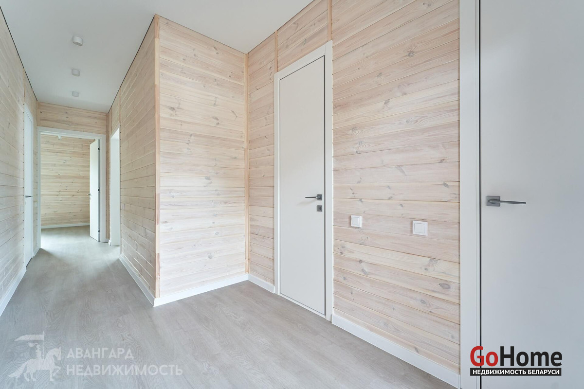 Теплые водяные полы (7 контуров), дом очень теплый. Летом комфортная температура. Фасад облицован металлопрофилем, долговечный материал, который не поведет на солнце. Материал отделки стен - сосна, на полу кварцвинил (легок в уборке и хорошо эксплуатируется), теневой натяжной потолок. Двери Юркас с качественной фурнитурой.